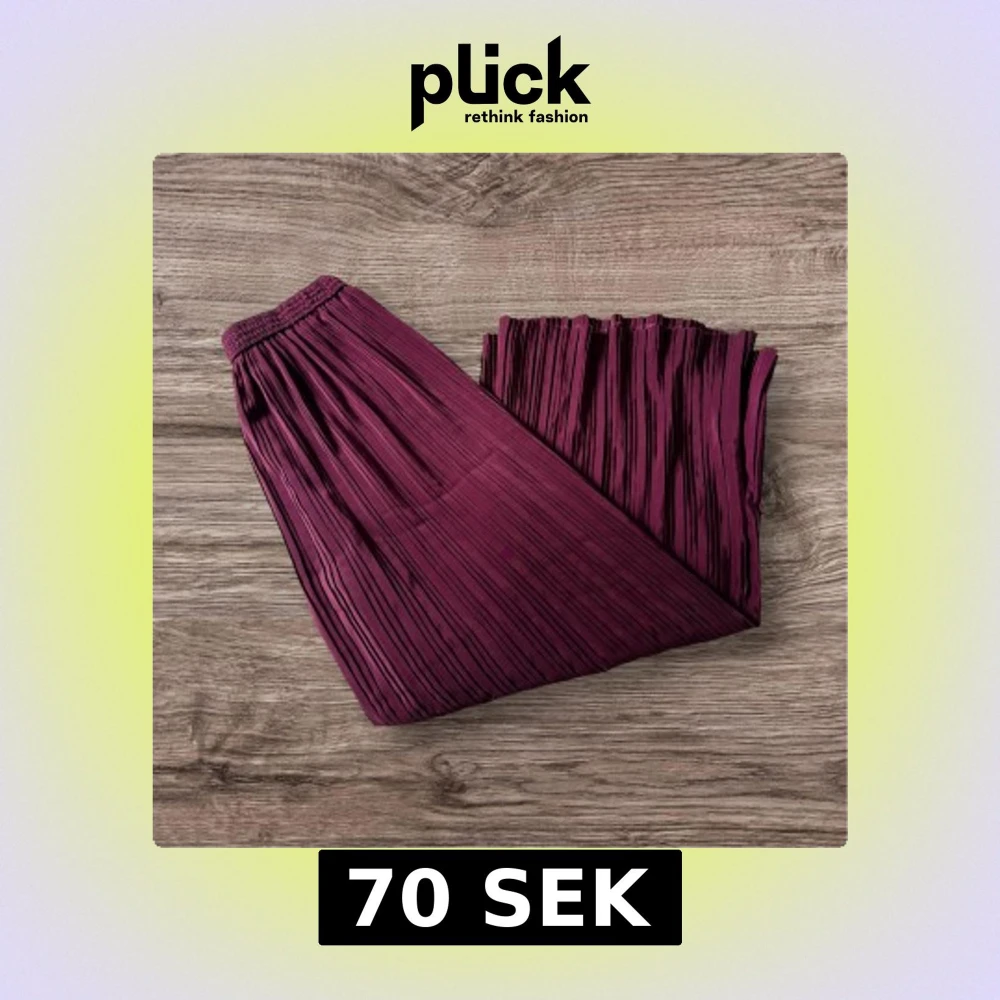 Säljer en vinröda plisserade byxor med resår i midjan. Byxorna har ett elegant fall och är perfekt för dig som gillar en stilren look med lite extra volym. Passar snyggt till både sneakers och boots. Hittar ej storlek men passar L/XL för en luftig look.