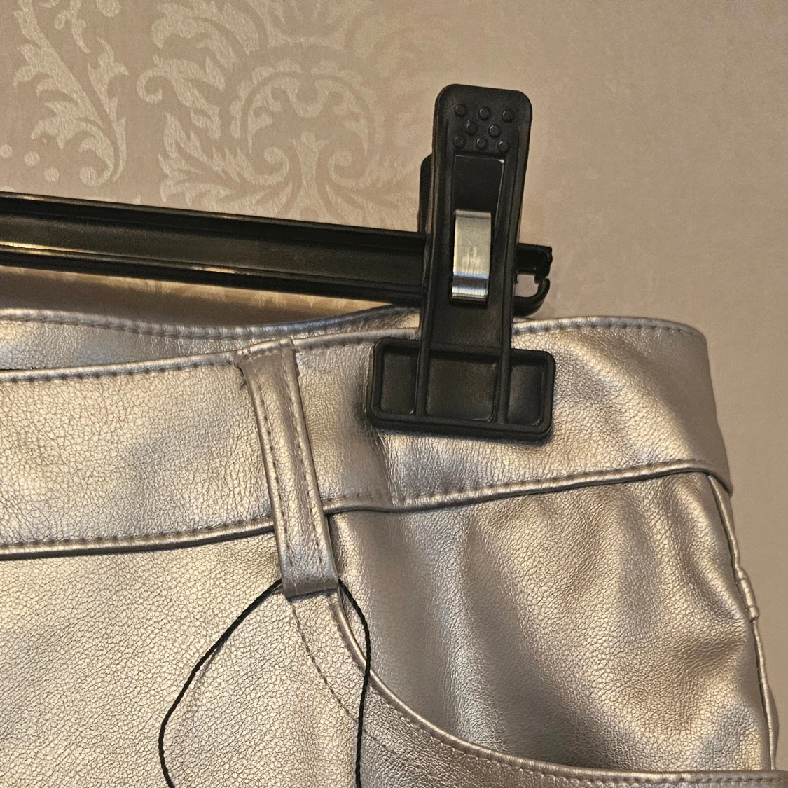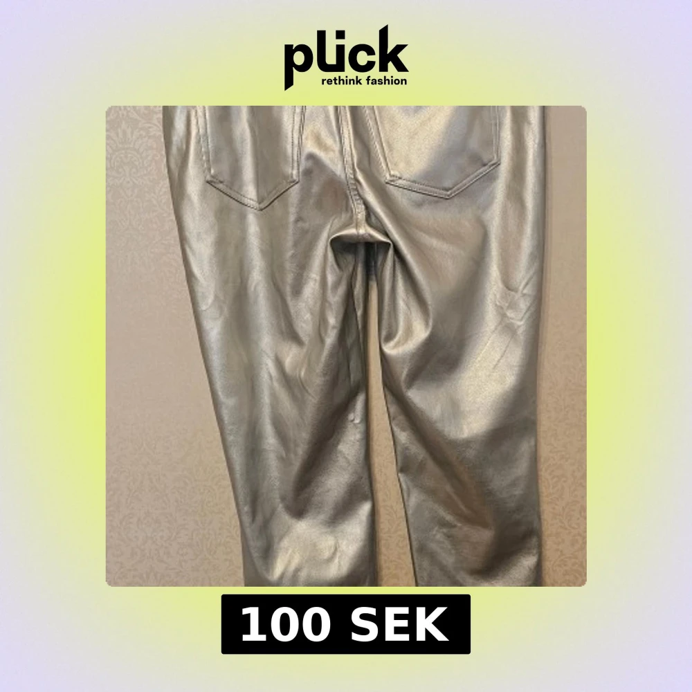 Snygga byxor i metallic silver med klassisk femficksdesign och bälteshällor. Materialet är syntet med skinnliknande finish som ger en cool och modern vibe. Passformen är normal och midjan är midwaist. Perfekt för dig som vill sticka ut med en unik look.