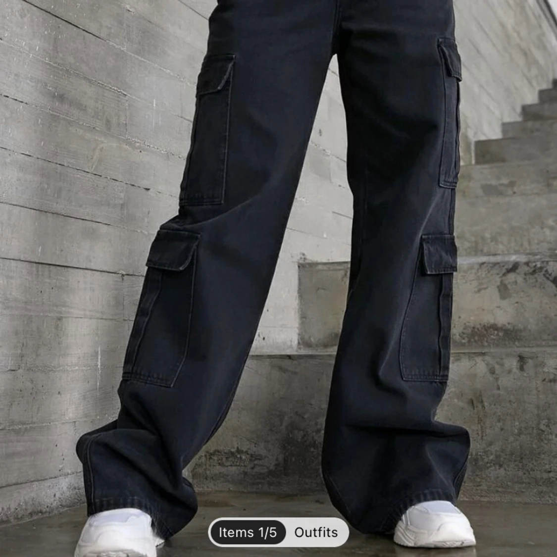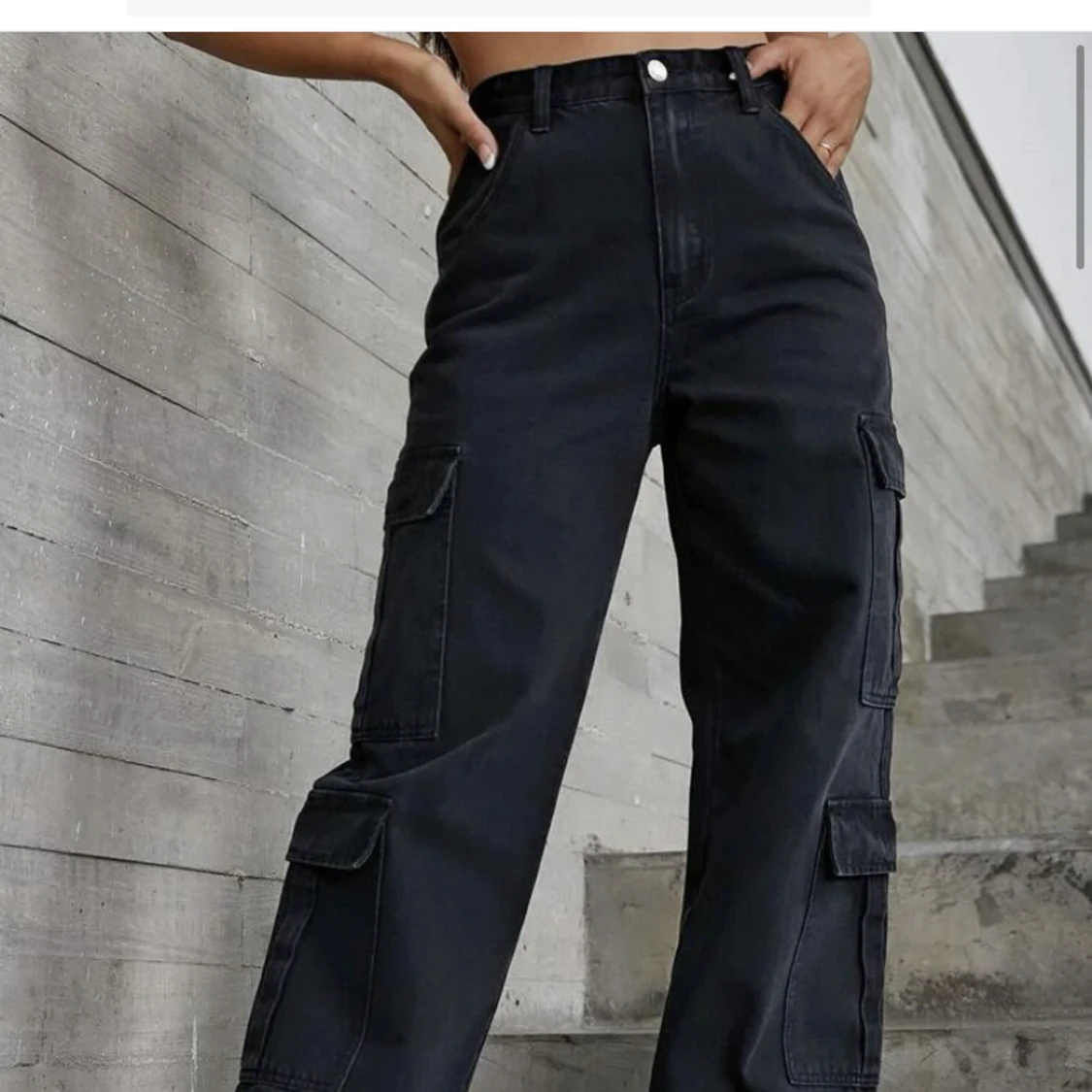 Svarta cargo jeans (oanvända) Dom e skitsnygga men fick inte över höfterna (har breda höfter)