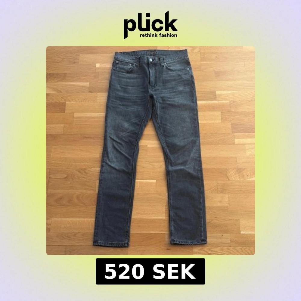 Säljer ett par Nudie Jeans då dem har blivit för små. Model: Lean Dean. Färg/tvätt: Mono Grey. Storlek: 32/32. Midjan: 41cm. Läng: 106cm