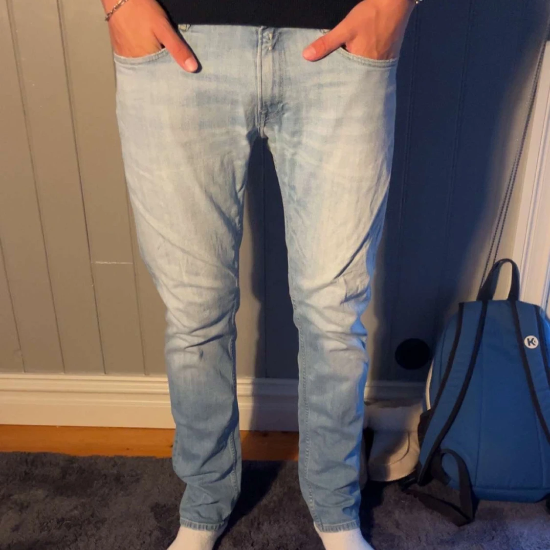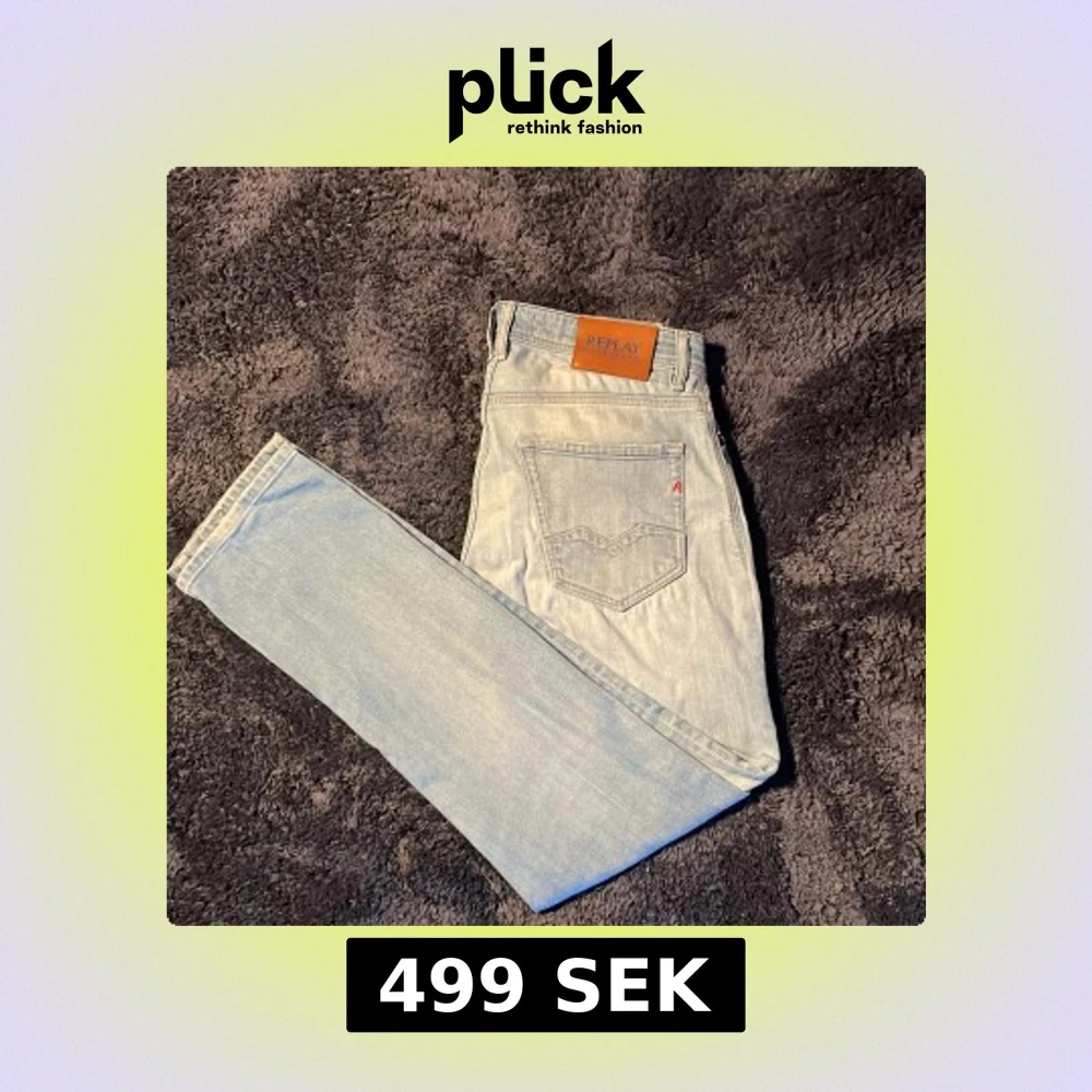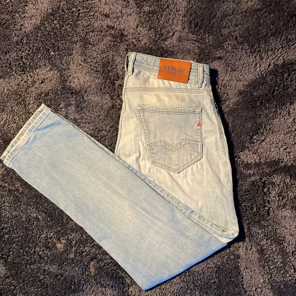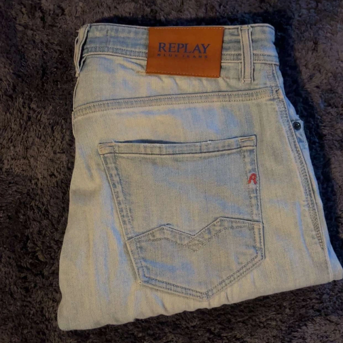 Hej, Säljer nu mina ljusblå jeans från Replay i storleken 28/32. Modellen på bilden är 186cm lång och väger 70kg. Tveka inte på att kontakta vid frågor eller funderingar. Pris kan gå ner vid snabb affär🔥⚜️🙌
