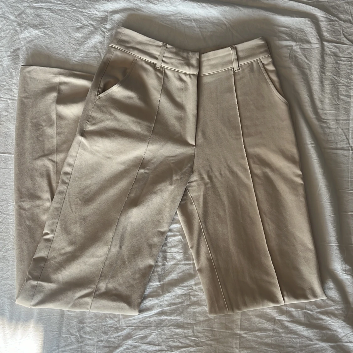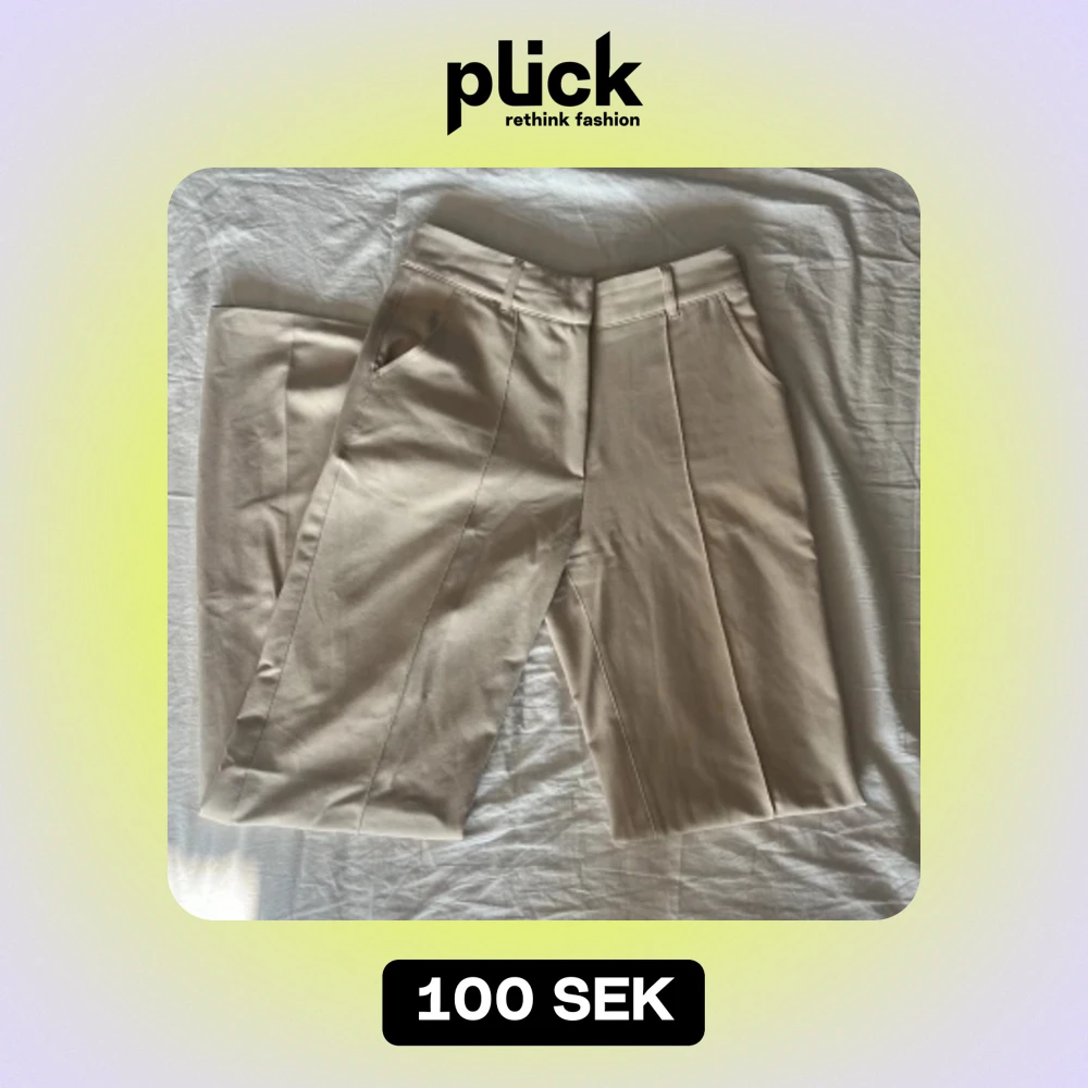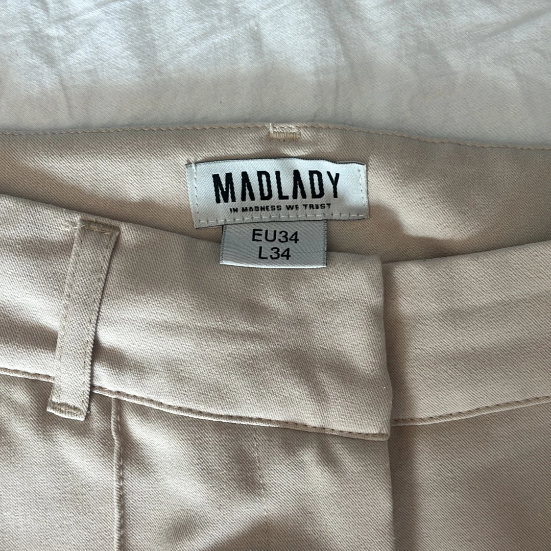 Säljer ett par snygga beigea kostymbyxor från Madlady. De är högmidjade och vida! Hör av dig om du har fler frågor!🫶🏻