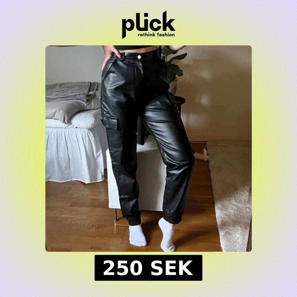 Cargobyxor i fakeskinn i storlek 34. Märket är Missguided och de är köpte från Nelly. Använda några få gånger, fint skick!