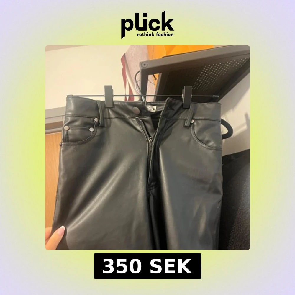 Snygga svarta skinnbyxor från Zara med dragkedja och knappdetaljer. Perfekta för en stilren look. Byxorna har en hög midja och en tight passform som framhäver figuren.