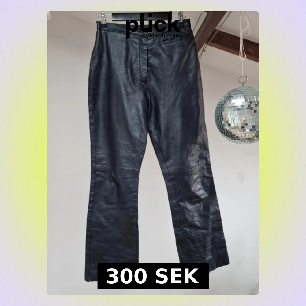 Nice, soft black leather pants with soft polyester lining đâ⏠Honestly the comfiest leather pants Iâve worn. As with all leather pants, it hikes down a bit in the back whilst squatting/sitting (see picture, to see how it acts in a LOW squat to test the very most it will hike down), but it is possible none the less. Compared to other Iâve worn itâs way better in these. Iâve grown out of them style wise, so itâs time for them to move on. Length: 96 cm+6 cm folded leather that can be folded out.