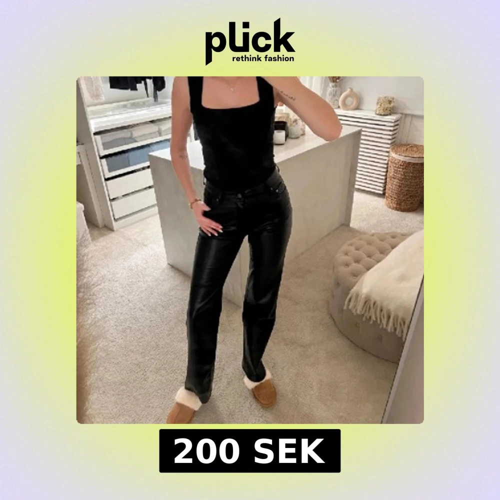 Snygga svarta byxor i skinnimitation med rak passform och klassisk femficksdesign. Byxorna har hög midja och stängs med knapp och dragkedja. Perfekta för dig som vill ha en cool och trendig look med lite edge. (Lånade bilder)