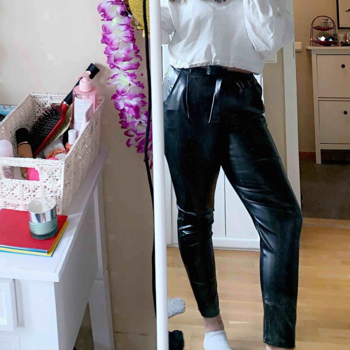 Säljer dessa ursnygga läderbrallorna från Nelly! Ej äkta läder. Hur snygga som helst men kommer ej till användning tyvärr. Det är storlek L, men funkar nog till M och även S då det är knyten i midjan! Finns i Karlskrona men kan skickas!✨🦋