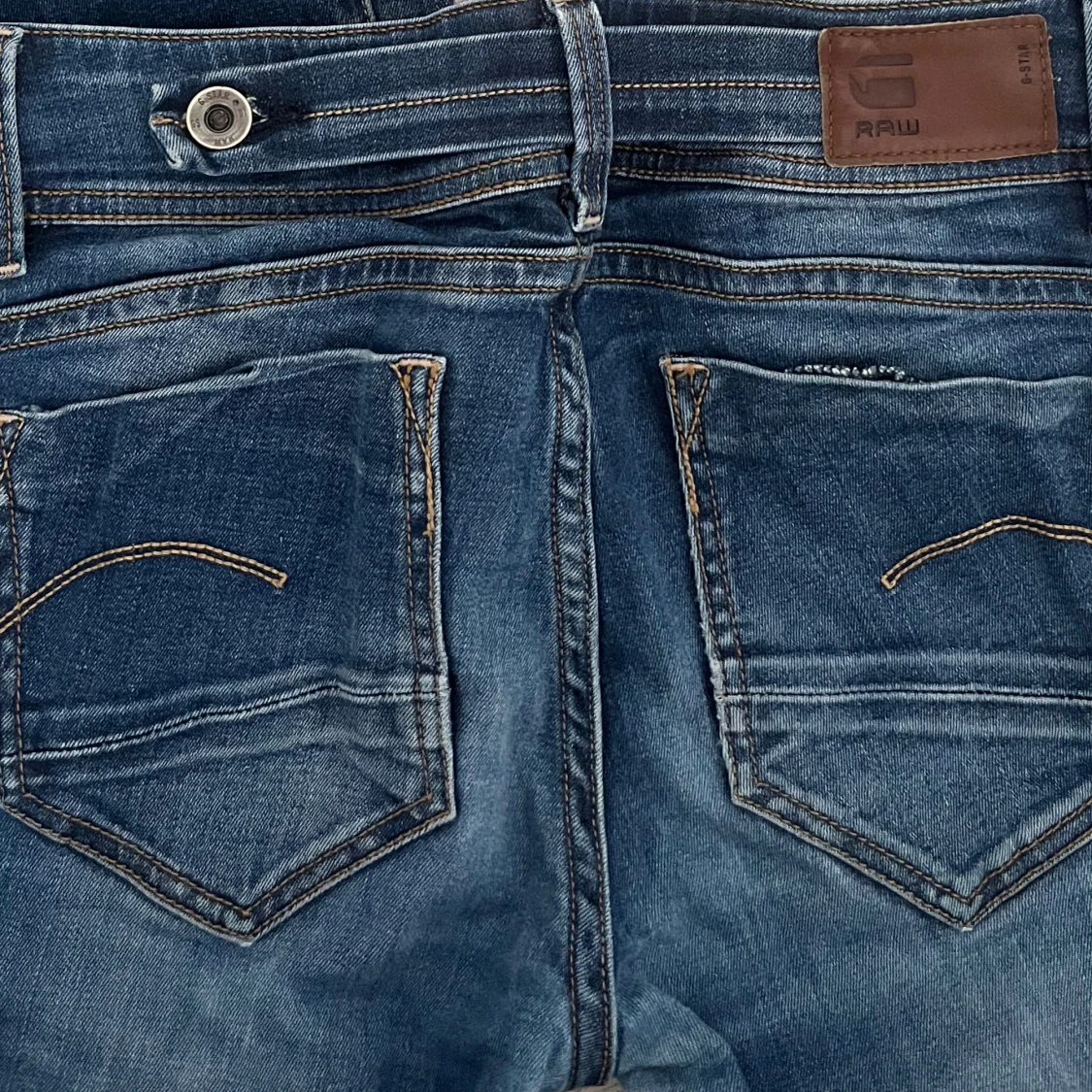 Supersnygga lågmidjade jeans! Coola fickor och justerbar midja. Lite slitna längst ner baktill men mycket bra skick. Långa i benen så passar även längre tjejer! 🩷