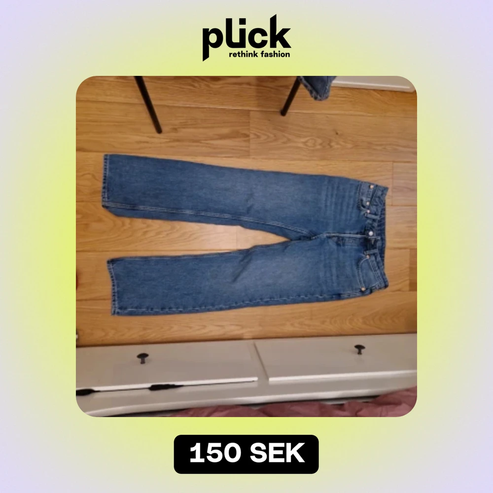 Ett par lågmidjade mörkblåa jeans. Ljuset gjorde så att färgen på byxorna i bild 4 såg konstiga ut.