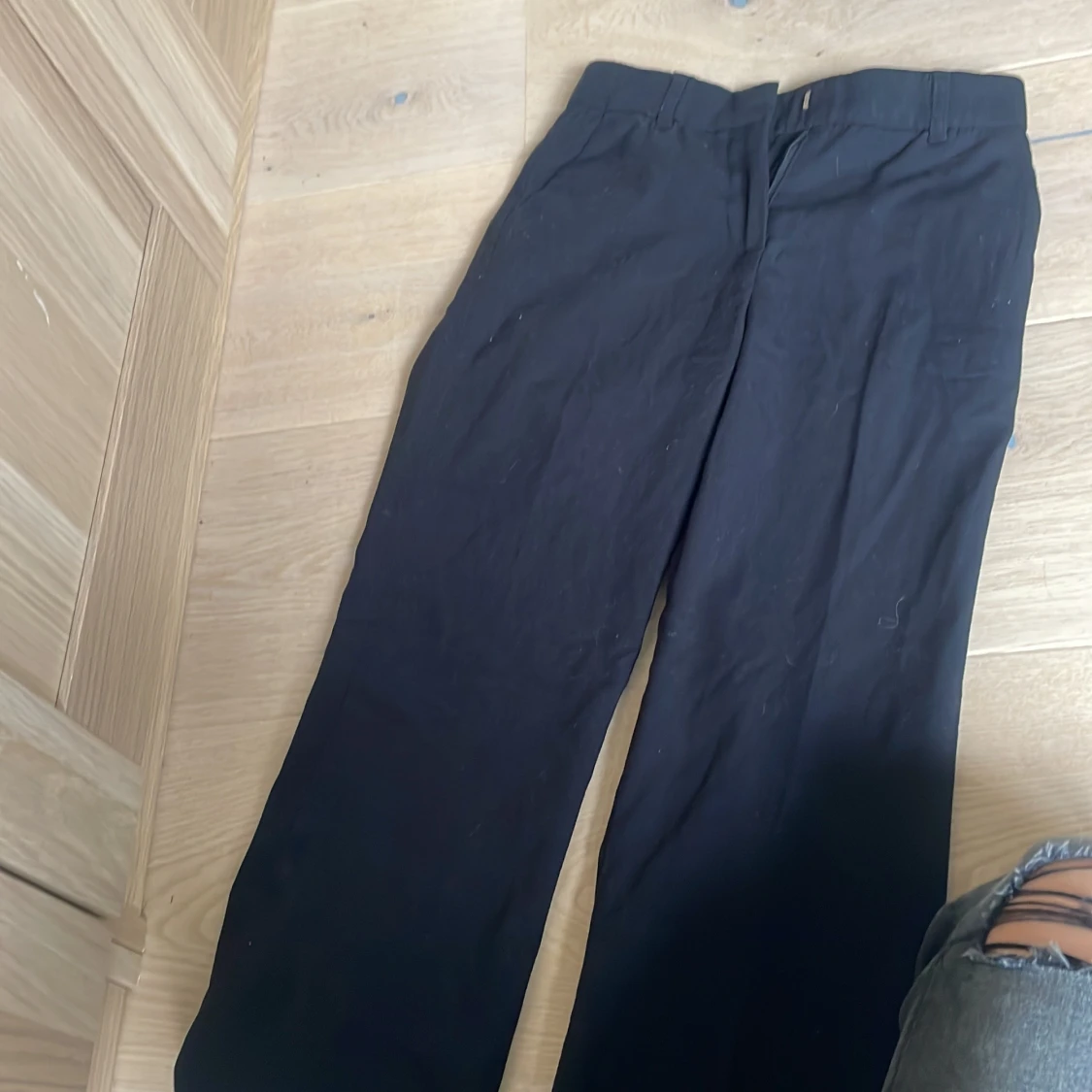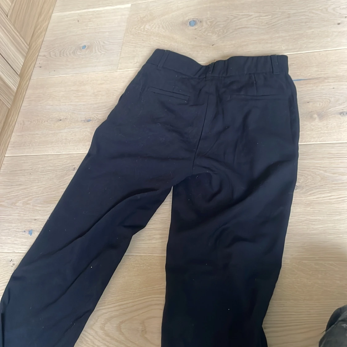 Svarta kostymbyxor från 157 i klassisk rak modell. Byxorna har hällor för bälte, diskreta fickor bak och är tillverkade i ett mjukt tyg som känns bekvämt hela dagen. Perfekta för en clean och stilren look.
