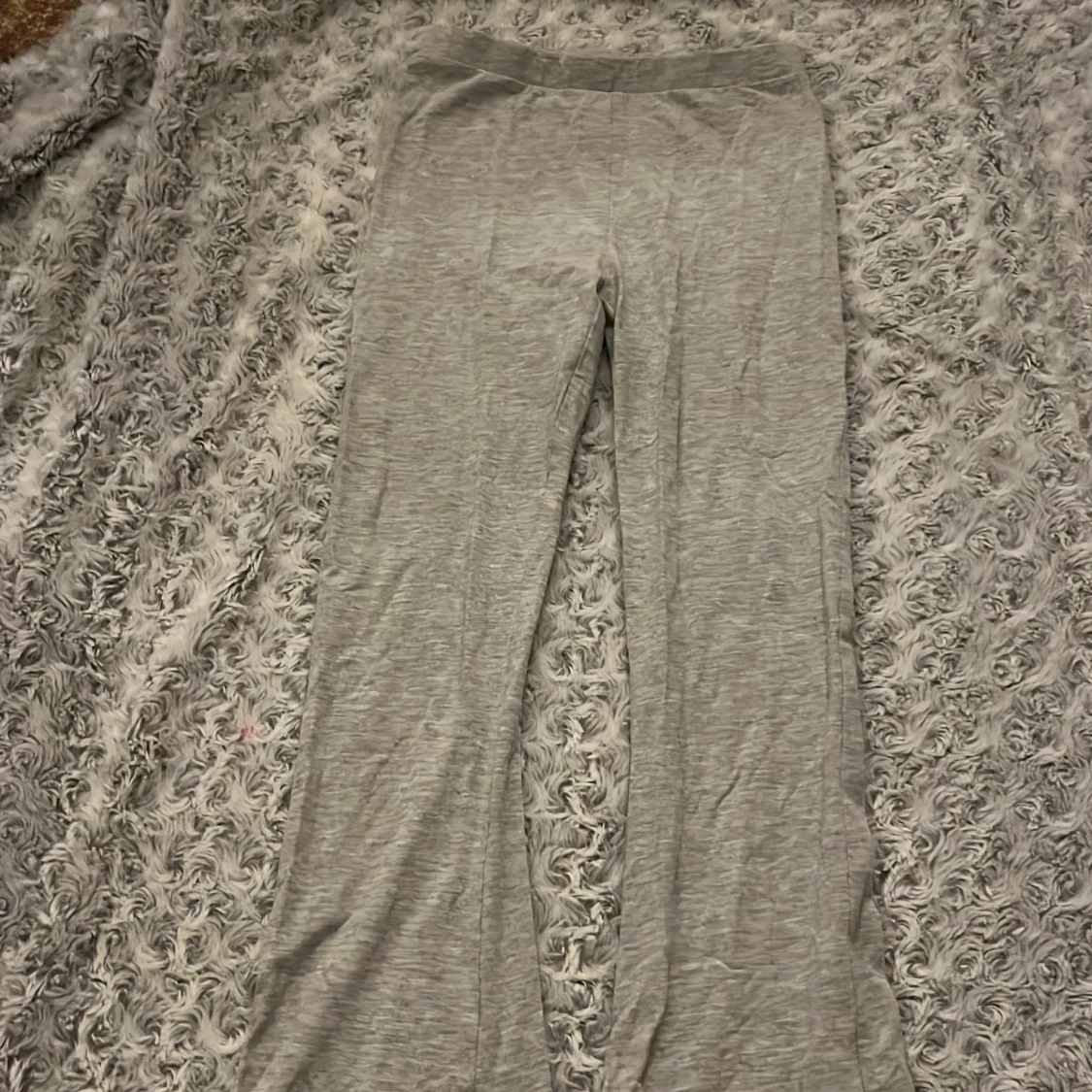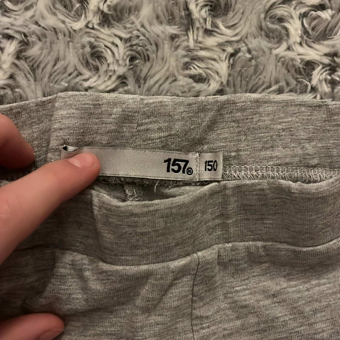 Säljer ett par grå mjukisbyxor från 157 i storlek 150. Byxorna har en enkel design med elastisk midja och raka ben som går ut lite nertill. Materialet är mjukt och stretchigt, perfekt för chill dagar. Snyggt basic-plagg att ha i garderoben.