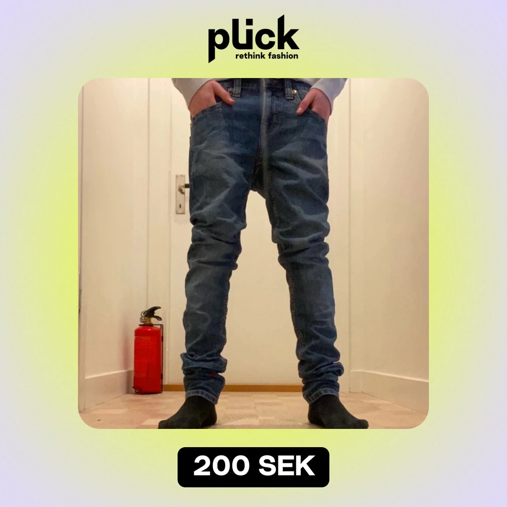 Säljer ett par snygga blå jeans från 157 i modellen Rocket. Passform slim fit. De har en klassisk femficksdesign och är nyskick, skick 10/10. Perfekta för vardagsbruk med en bekväm passform. Säljer de för att de sitter lite tajt på mig. Endast testade. Storlek Xs detsamma som W26-28 L30. Modellen på bilder är 160cm lång och väger ca 45kg.