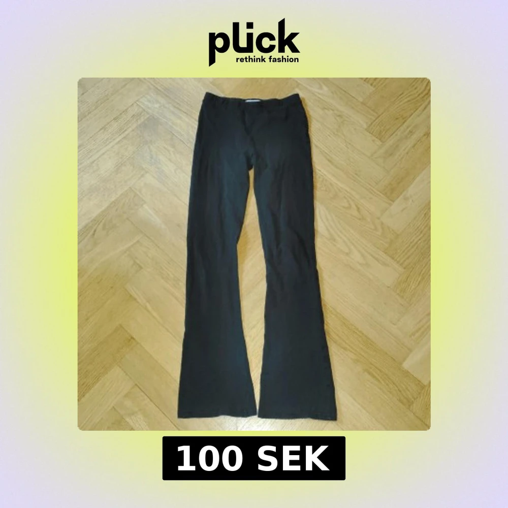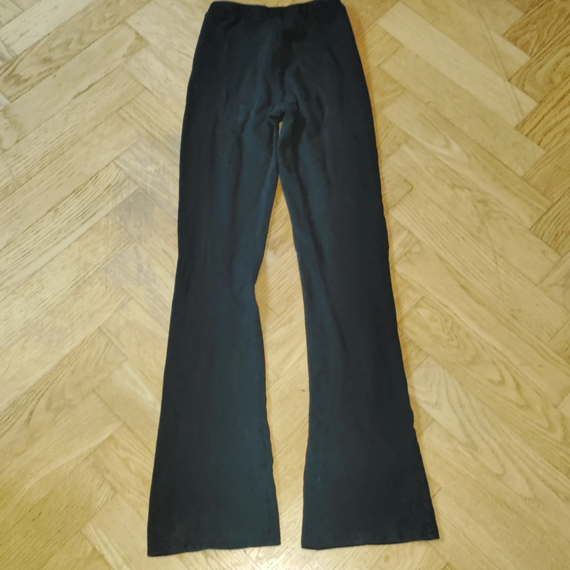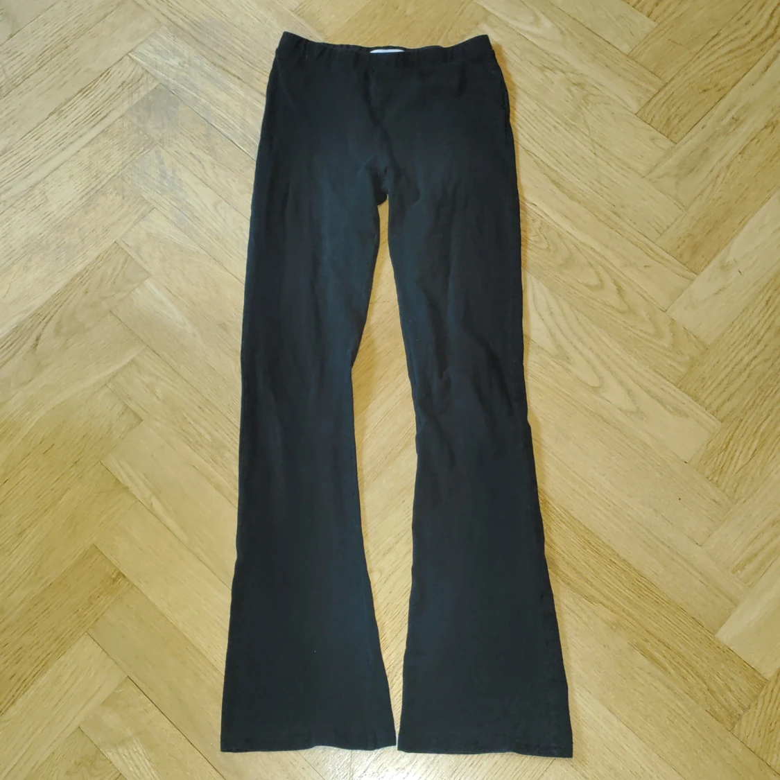 Svarta byxor med bootcut och stretchig midja. Mjukt bomullsmaterial, använda ungefär 3 gånger .