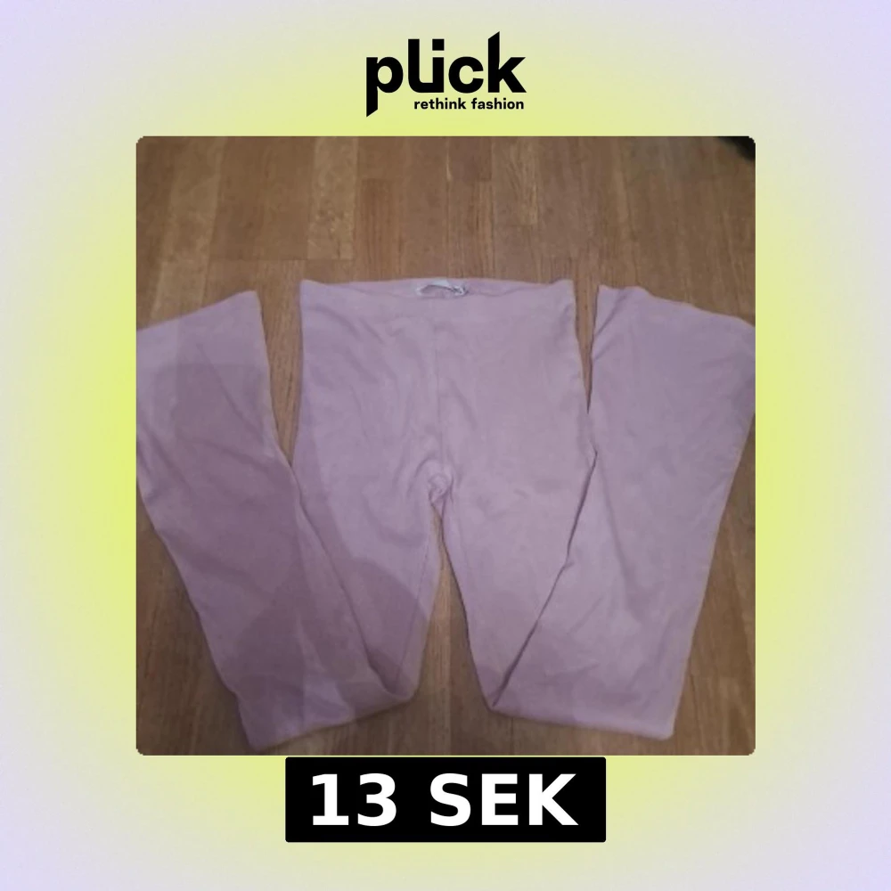 Säljer ett par mjuka rosa leggings i ribbat material. Perfekta för en avslappnad stil eller som ett bekvämt lager under andra kläder.