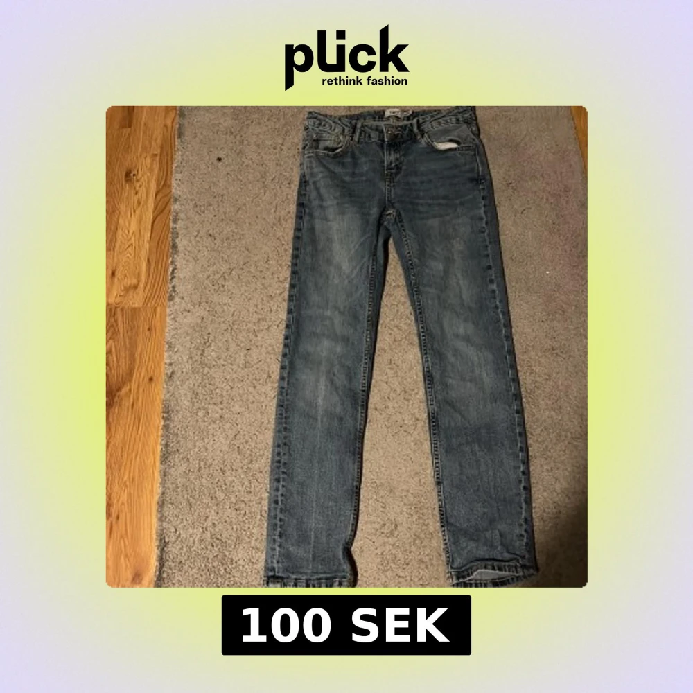 STORLEK 160 CM.Ett par klassiska blå jeans från 157 med raka ben och normal passform. Jeansen har fem fickor, dragkedja och knapp framtill samt snygga slitningar för en avslappnad look. Perfekta till sneakers eller boots och funkar året runt.