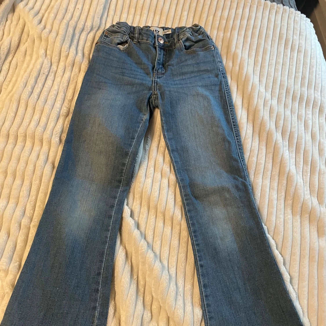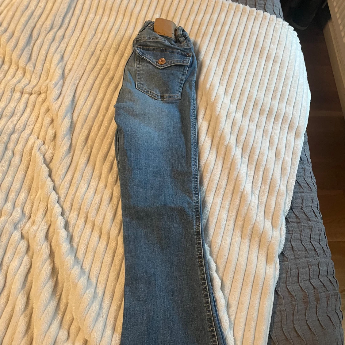 Säljer ett par Lager 157 jeans i blå tvätt med bootcut-ben. Byxorna har fem fickor, knapp och dragkedja framtill samt snygga kontrastsömmar. Perfekt passform och cool retrostil för dig som gillar tidlösa jeans.