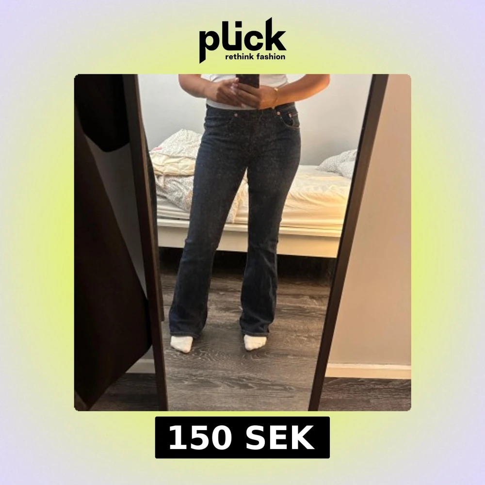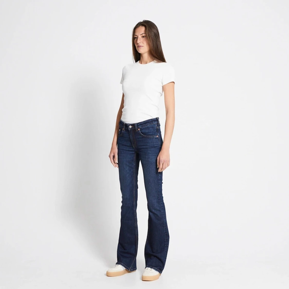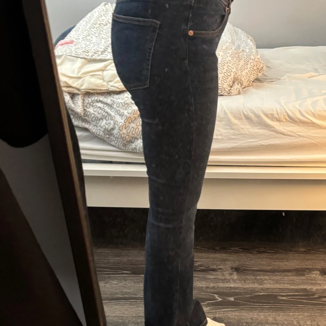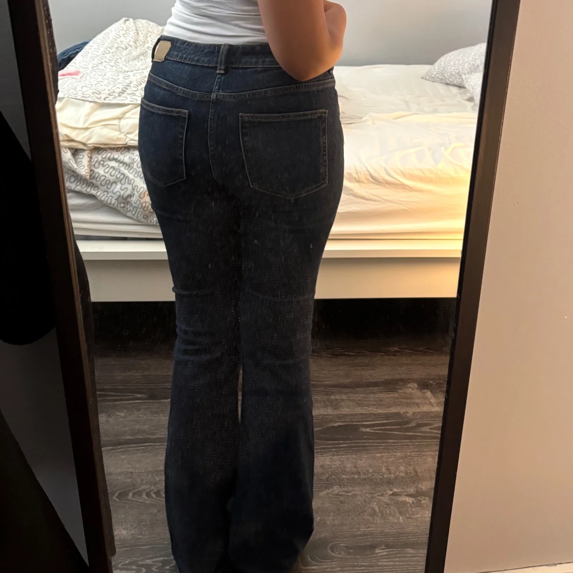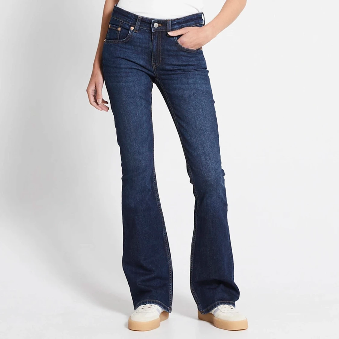 Mörkblå lager 157 jeans med bootcut passform och klassisk femficksdesign. Jeansen har medelhög midja och vida ben som blir vidare nedtill. Tillverkade i robust denim med snygga kontrastsömmar och metallknappar. Perfekta för en avslappnad och trendig look.