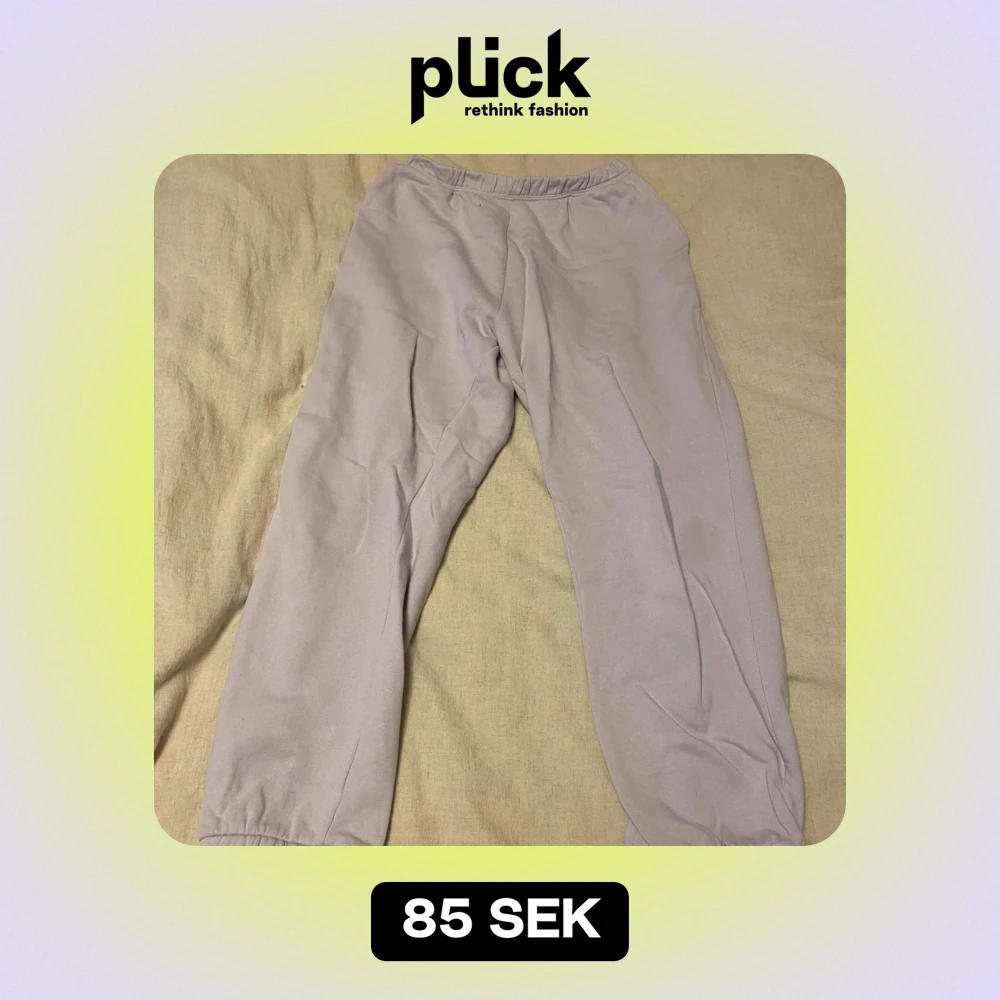 Säljer ett par bekväma beige mjukisbyxor i storlek L. Perfekta för en avslappnad dag hemma eller en snabb tur till affären. Byxorna har en elastisk midja för extra komfort. De är i bra skick och redo för en ny ägare!