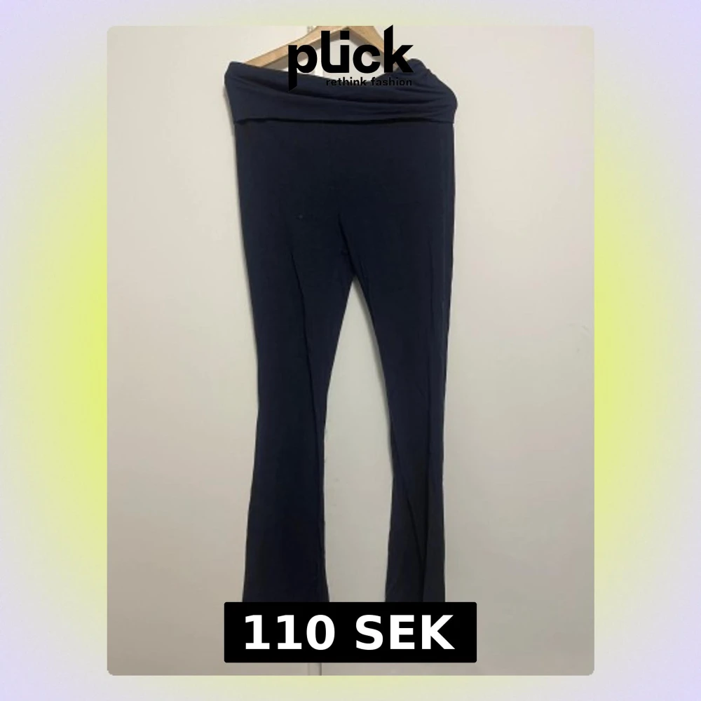 Snygga mörkblå mjukisbyxor från 157 i storlek L. Byxorna har hög midja med bred linning och ett rakt, lite vidare ben. Perfekta för chill dagar och riktigt sköna tack vare det mjuka bomullsmaterialet.