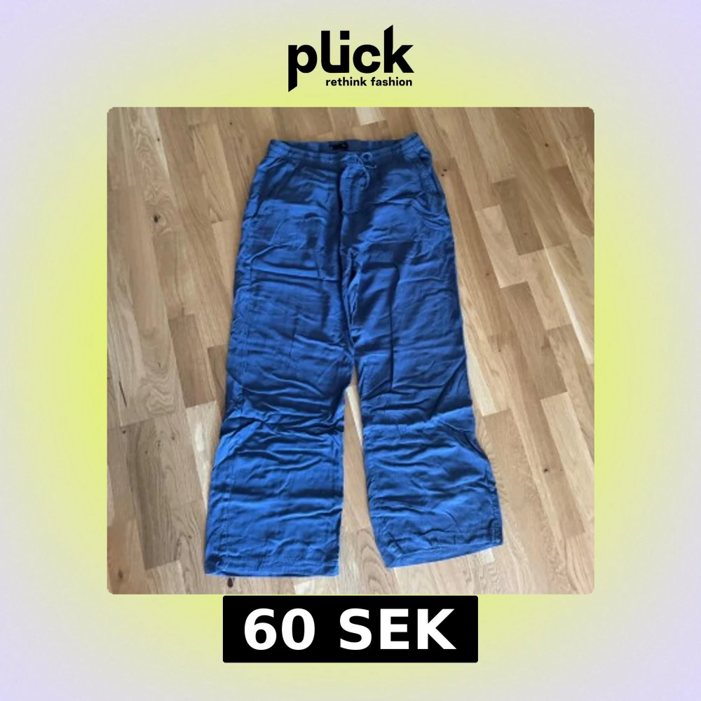 Säljer ett par chill blå linnebyxor från Lager 157, modell Denise. De har breda ben, elastisk midja med snörning och två sidofickor. Perfekta för dig som gillar loose fit och vill ha något skönt och luftigt på sommaren.