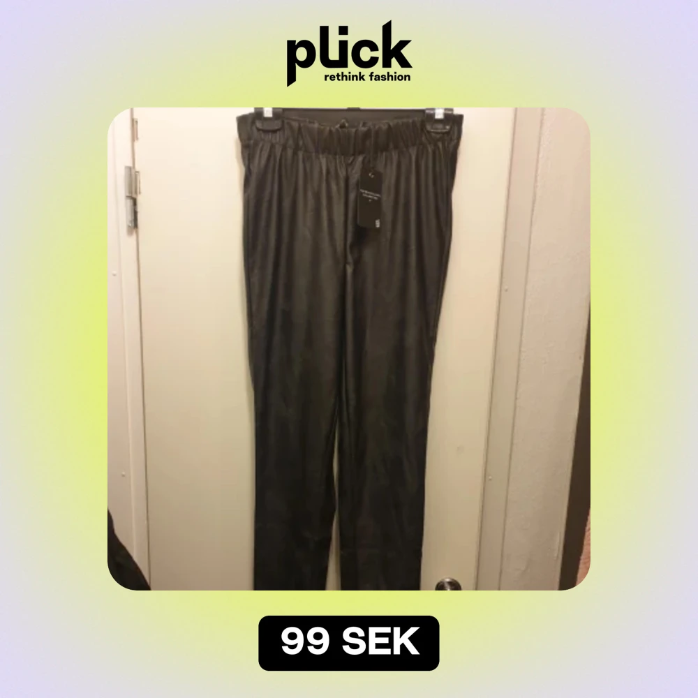 Säljer ett par svarta skinnbyxor, med lappen kvar. De är högmidjade och har en tight passform. Perfekta för en cool och edgy look! 🖤