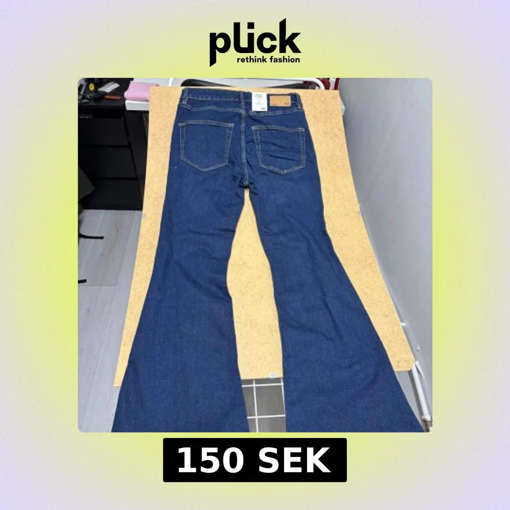 Snygga blå Snake Flare jeans från 157 med hög midja och utsvängda ben. Klassisk femficksmodell med kontrastsömmar och knappstängning. Perfekta för dig som gillar retrovibbar och vill sticka ut med en cool siluett.