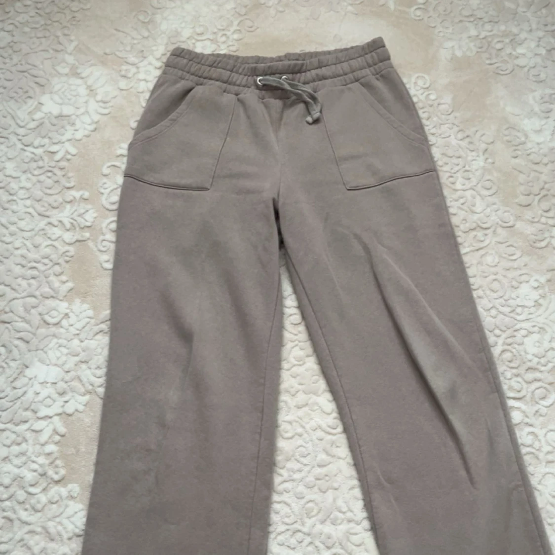 Säljer ett par beige mjukisbyxor med bred resår i midjan och snörning framtill. Byxorna har raka ben, två stora fickor fram och två bakfickor. Perfekta för chill dagar eller när du vill vara extra bekväm.🤎