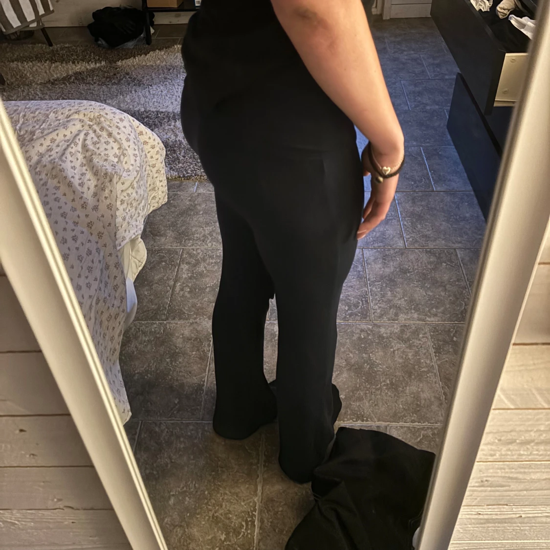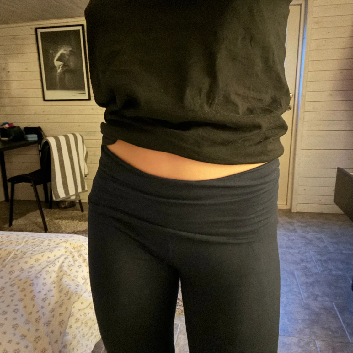 Säljer mina yoga pants som man viker ner i storlek S då de är för stora för mig i midjan! Jag är 173 och de går hela vägen ner på mig. Skriv vid frågor!