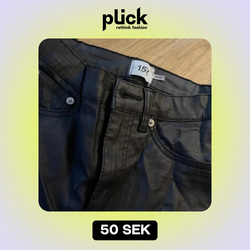 Jeans ifrån lager 157, i typ läder/skinn material. Använda en gång. I storlek S. Väger 378 gram så frakten blir 72 kr.