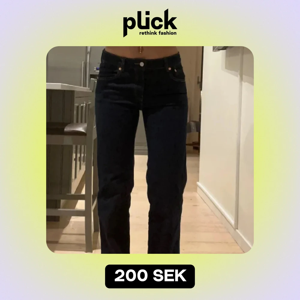 Säljer ett par svarta jeans i mycket bra skick. De är i storlek m short men passar S också 🖤Jeansen har snygga fickdetaljer med knappar bak och är perfekta för både vardag och fest. Passar till allt och är knappt använda då dem inte passade🖤lånad första bild