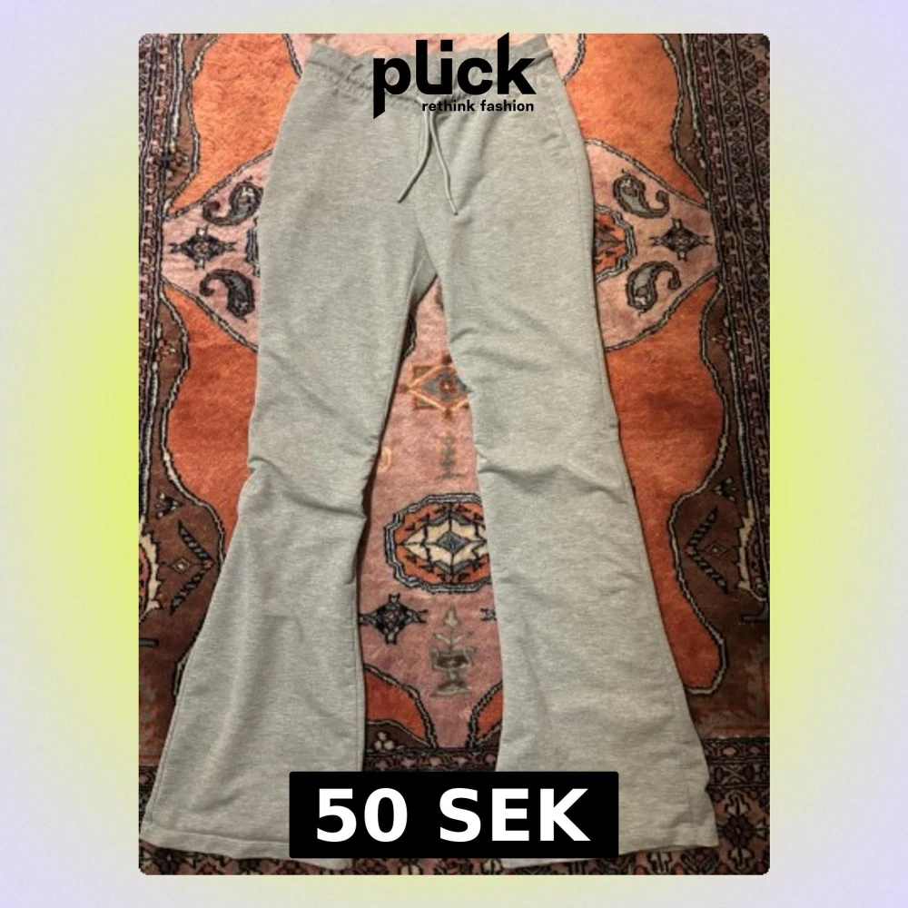Snygga grå mjukisbyxor från 157 i storlek M. Byxorna har bootcut-ben, elastisk midja med snörning och är gjorda i mjukt bomullsmaterial. Perfekta för chill dagar och har en enkel, clean look.