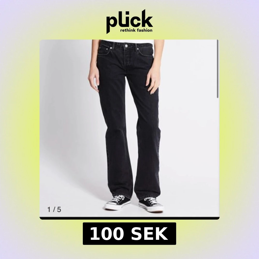 Jeans med låg midja och rak passform. Fickor fram och baktill. Knappgylf samt hällor för bälte. Jeansen är en fullängdsmodell gjord i en denim i 100% bomull utan stretch.