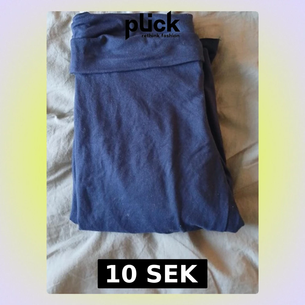 Säljer ett par mörkblå leggings med bred och mjuk midja. De är tillverkade i ett stretchigt bomullsmaterial som är skönt mot huden. Perfekta för chill eller träning. Färgen är djup och passar till det mesta. Snygg och enkel design utan mönster eller detaljer.