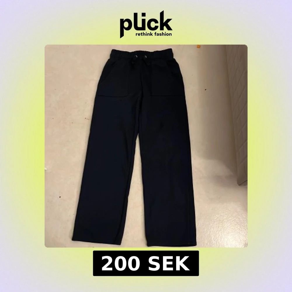 Mörkblåa mjukisbyxor från Lager 157, modell Stella. Byxorna har bred resår i midjan med snörning, raka ben och stora fickor fram och bak. Perfekta för chill dagar och enkel stil. Materialet är mjukt och bekvämt. Använd 1 gång!