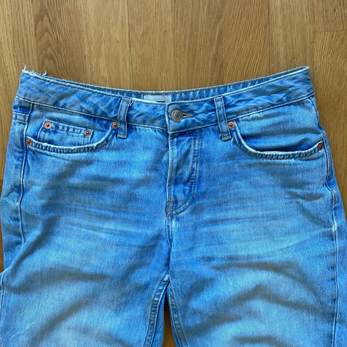 Low whaist jeans som är super sköna! Det står inte vilken storlek men jag skulle gissa på S-M