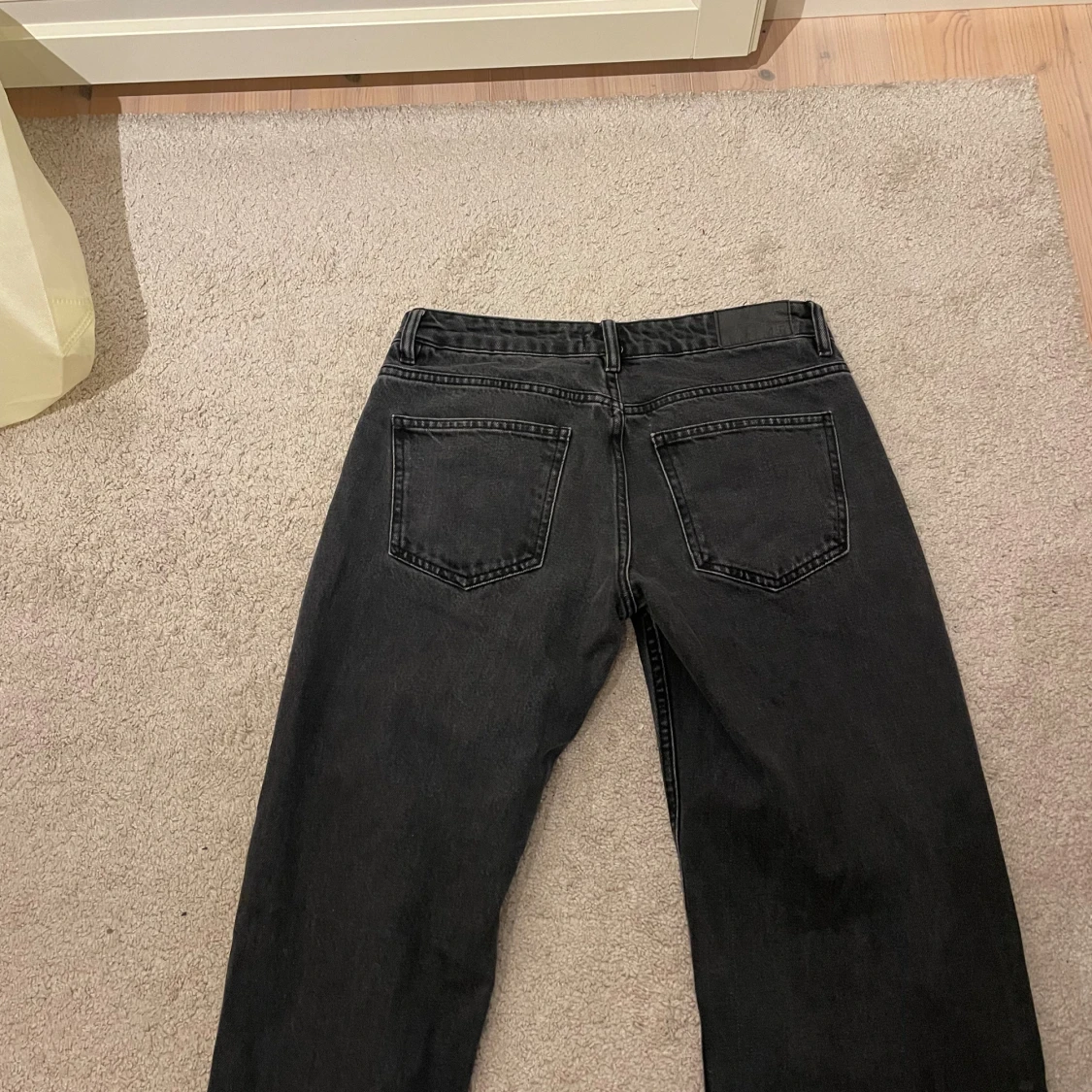 Säljer ett par svarta jeans från 157 med rak passform och klassisk femficksdesign. Jeansen har normal midja och är tillverkade i ett slitstarkt denimtyg. Perfekt för dig som gillar en enkel och clean look med lite loose vibe.