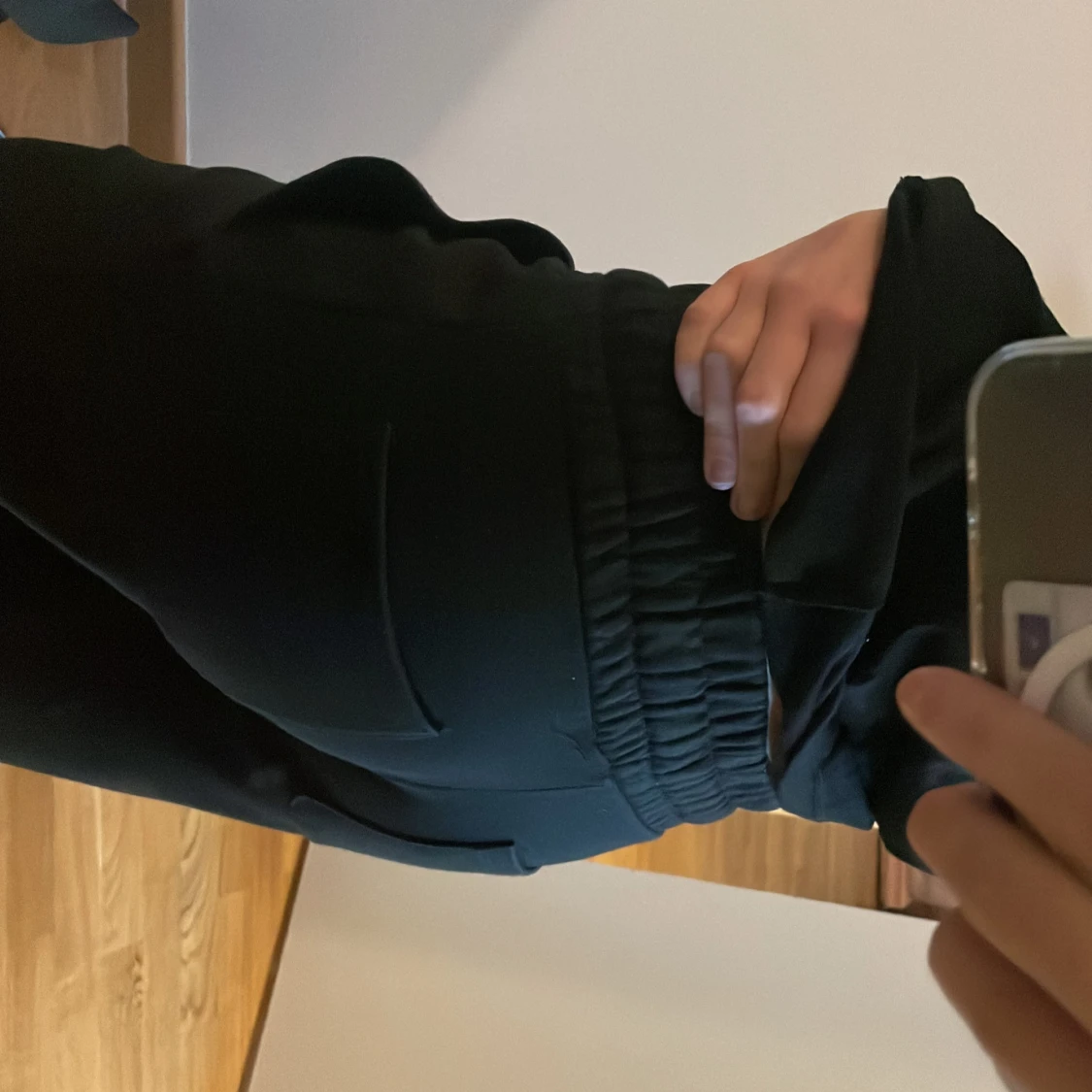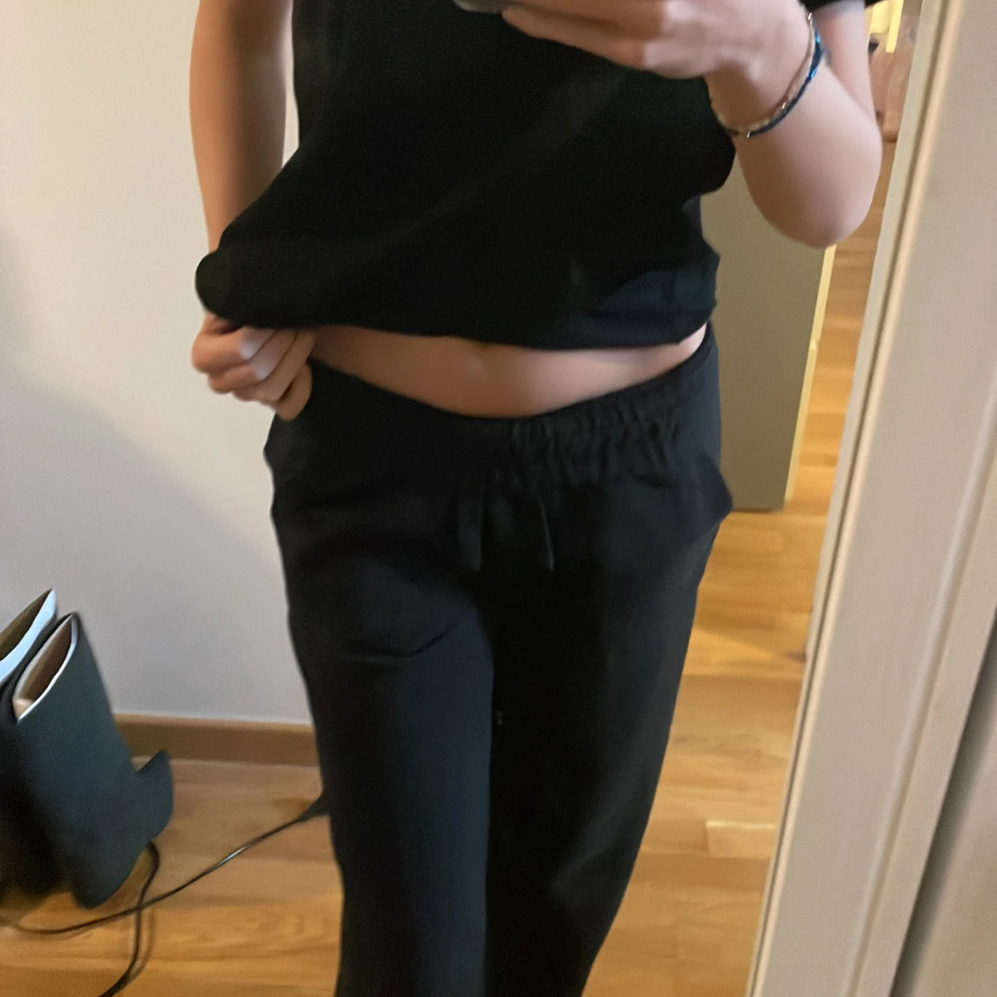 Svarta byxor från Lager 157, modell Stella, med elastisk midja och dragsko. Byxorna har raka ben och sidfickor, vilket ger en chill och enkel look. Perfekta för dig som gillar bekväma och stilrena plagg.