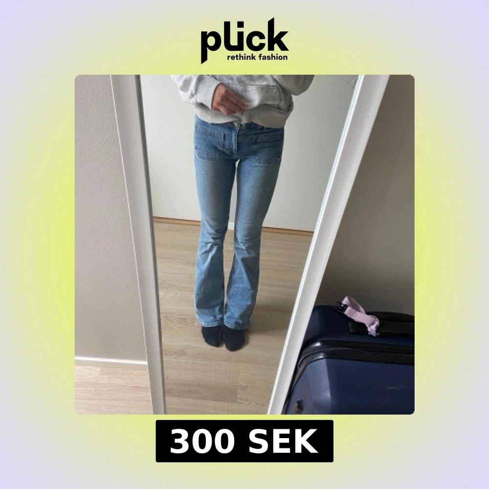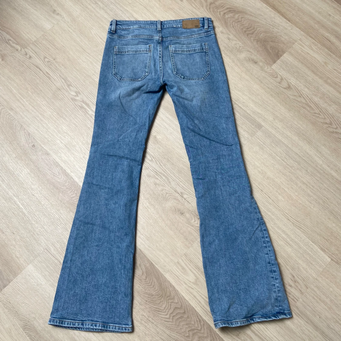 Snygga ljusblå bootcut jeans från 157 i modellen Lowboot Patch. Jeansen har låg midja, klassiska fickor fram och bak samt full längd. Perfekta för dig som gillar en retro vibe och vill ha ett par jeans med lite utsvängda ben. Materialet är klassisk denim. Använt 2 gånger älskar dem men har blivit lite stora. Köpte dem för 400 och säljer för 300 eftersom att dem knabbt är använda.