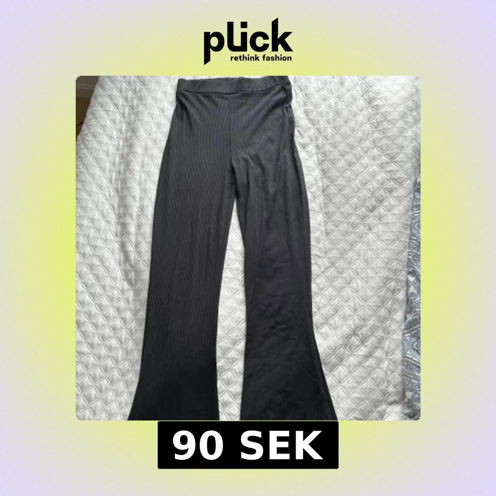 Snygga svarta ribbade byxor med en bekväm passform. Byxorna har en utsvängd stil och är perfekta för en avslappnad look. De är tillverkade i ett mjukt material som ger en skön känsla hela dagen.