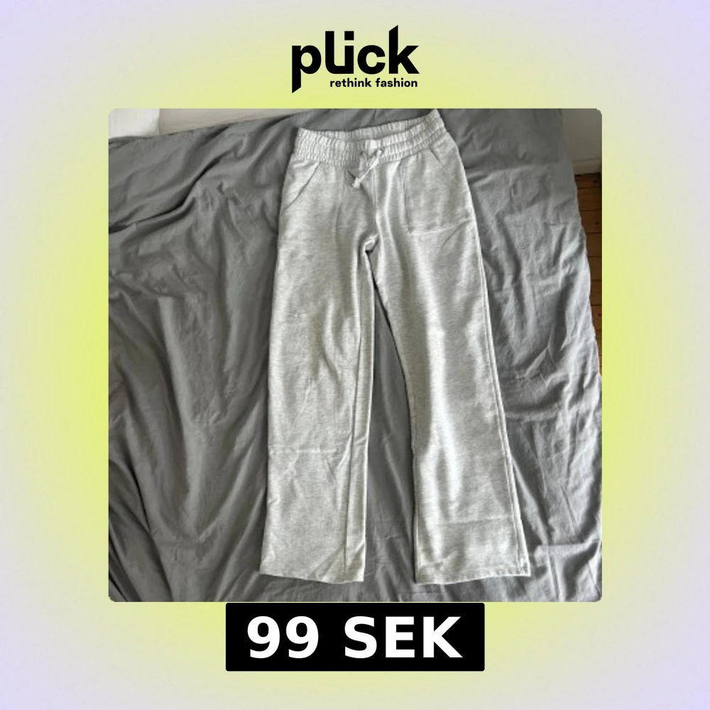Säljer ett par ljusgrå mjukisbyxor med resår och dragsko i midjan. Byxorna har raka ben och två fickor framtill. Perfekta för en avslappnad stil och superbekväma att ha på sig.