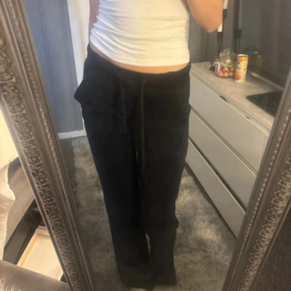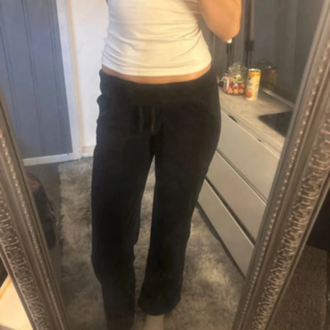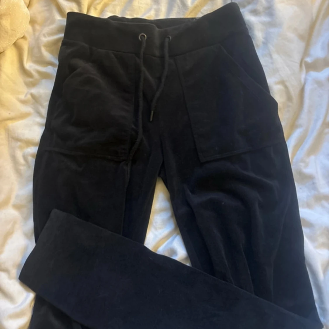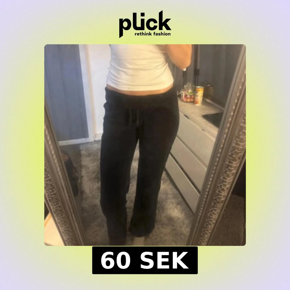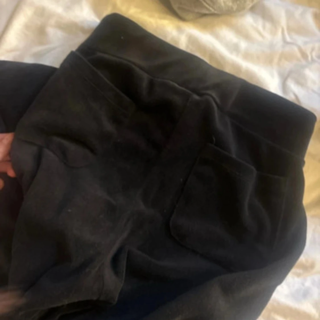 Mjukisbyxor i velour tyg med fickor bakđ€ har Ă€ven en annons med ett par liknande i rosa, kan gĂ„ ner i pris vid köp av bĂ„da paren