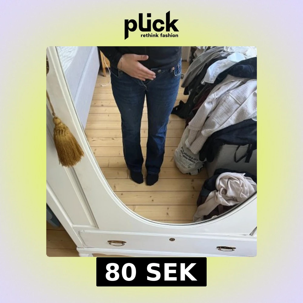 Snygga blå jeans från 157 med klassisk bootcut-passform. Jeansen har kontrastsömmar, fem fickor och coola detaljer. Materialet är slitstarkt jeans. Perfekt för dig som gillar retrovibbar och bredare benslut. Finns ett hål vid en ficka bak, som man ser på bild nr 2. Kommer inte till användning längre då det är för små
