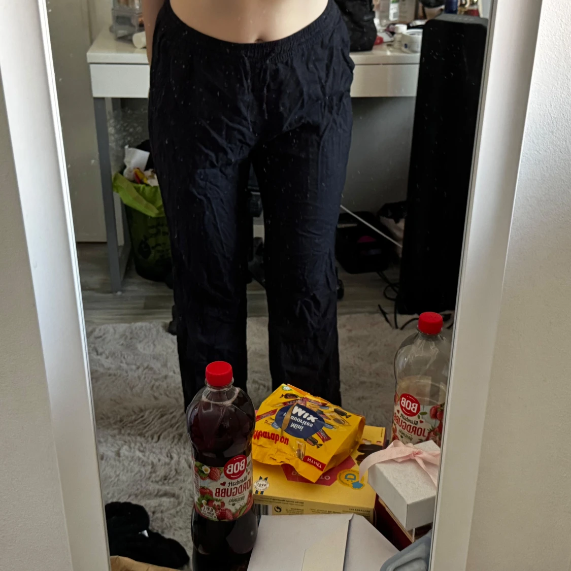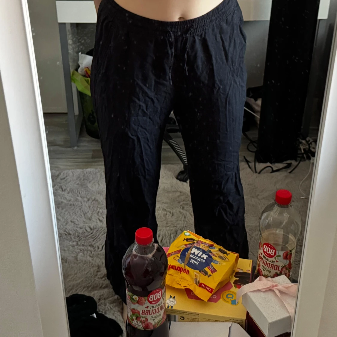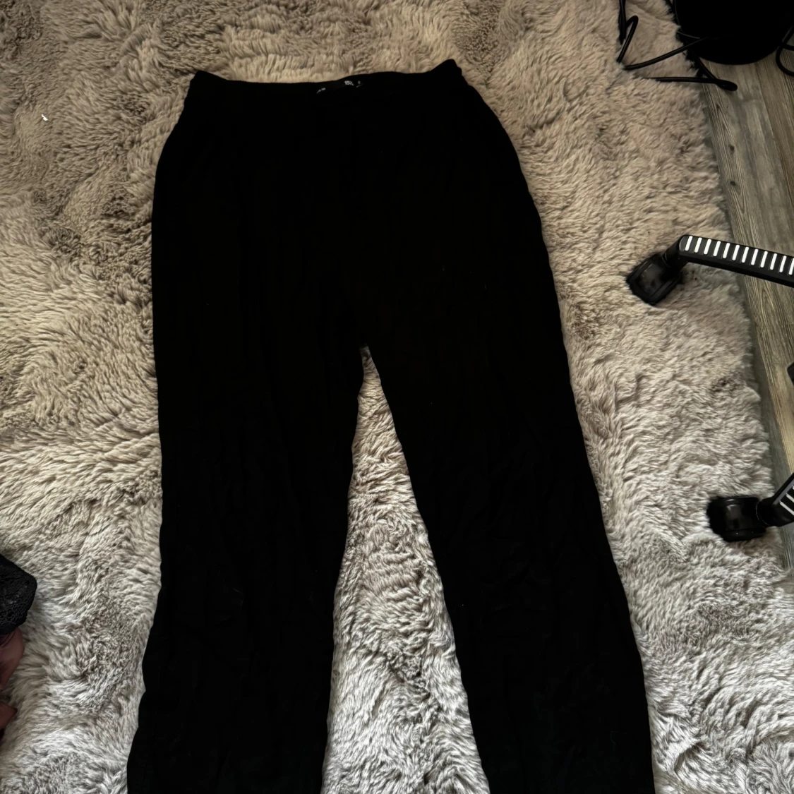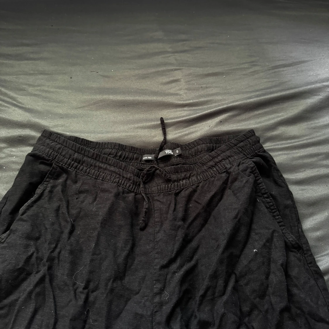 Svarta linnebyxor från lager 157 i storlek S. Byxorna har elastisk midja med snörning och raka ben. Sköna och enkla att slänga på sig, perfekta för chill dagar.
