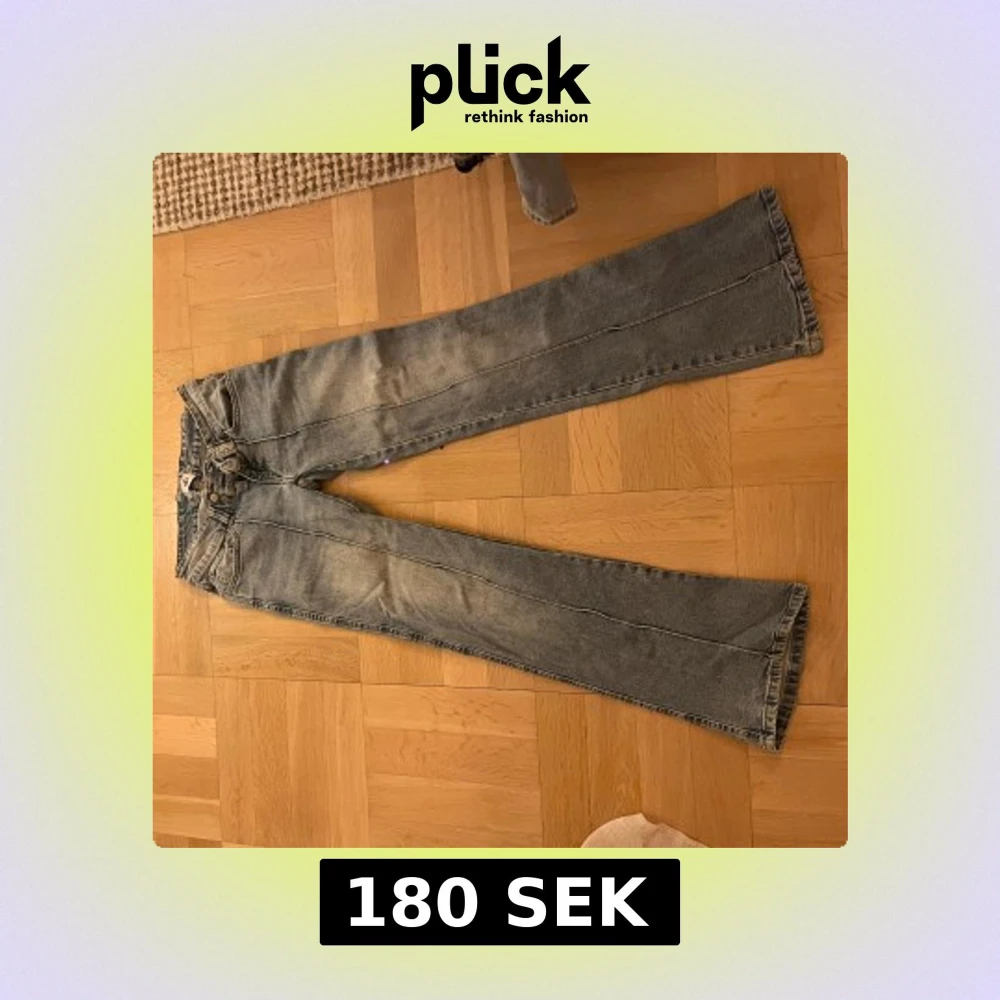 Ljusblå jeans med klassisk bootcut passform. Jeansen har en rak, något utsvängd benvidd och tydliga sömmar längs benen. Tillverkade i slitstarkt denim med femficksdesign. Perfekta för en avslappnad och trendig look.