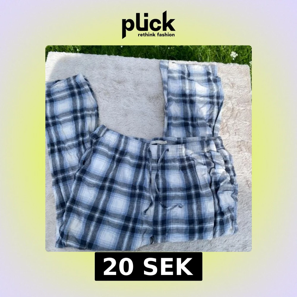Blå och vita rutiga mjukisbyxor från 157 i storlek XL. Byxorna har elastisk midja med snörning och är tillverkade i mjukt bomullstyg. Perfekta för chill dagar hemma eller när du vill vara extra bekväm.