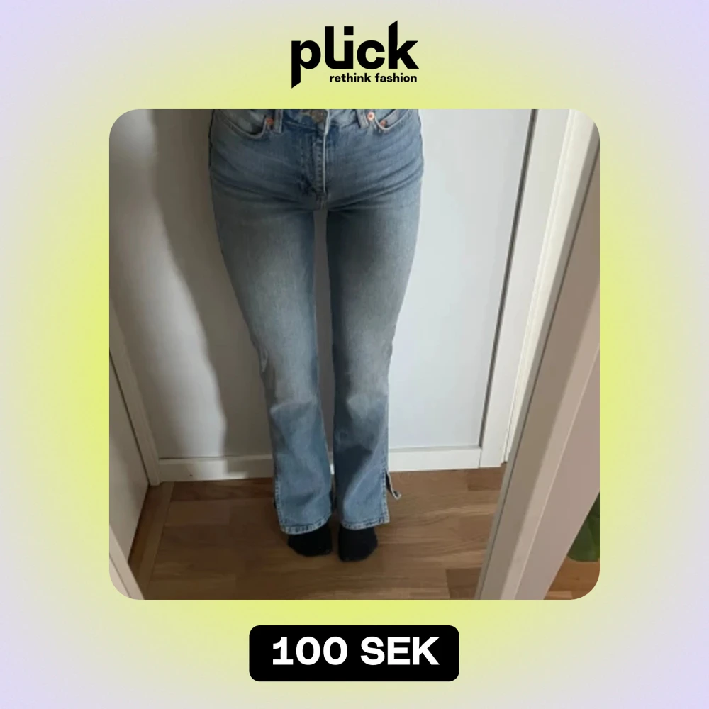 Blå jeans med slit vid foten