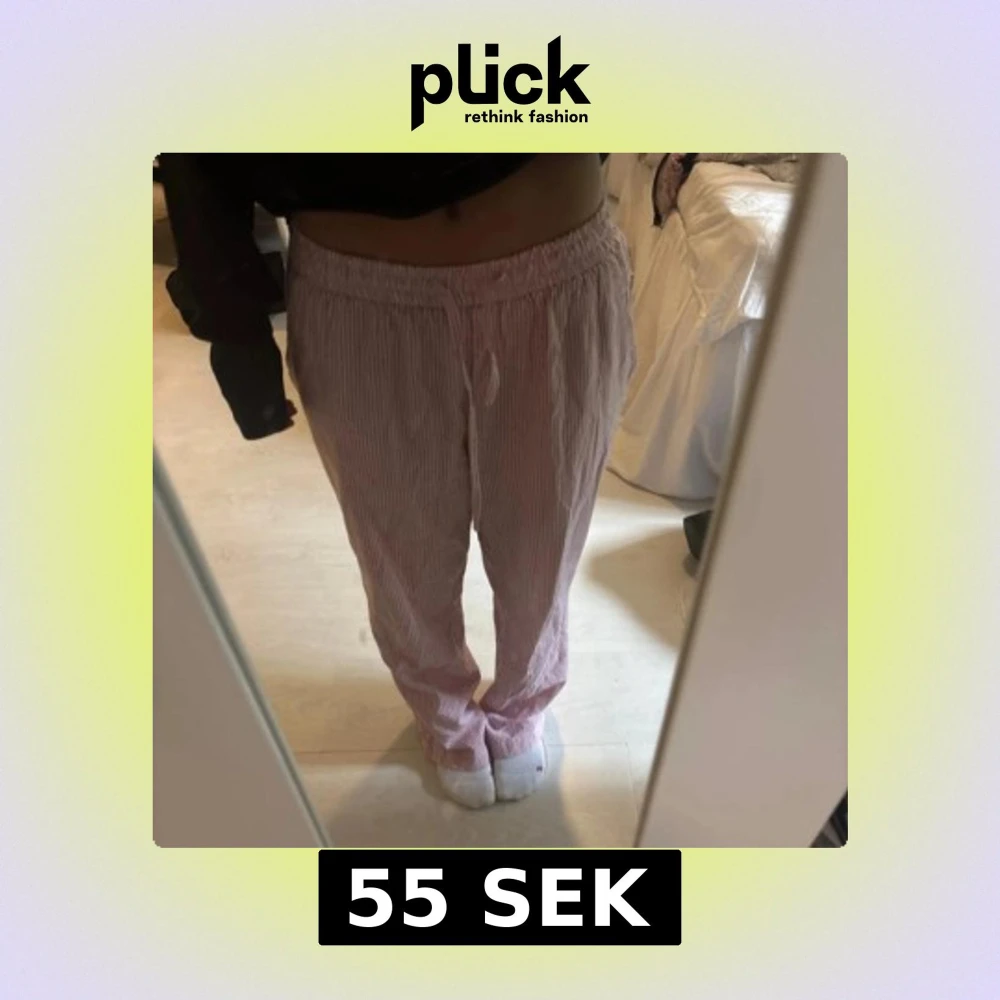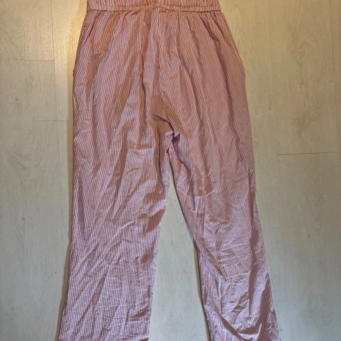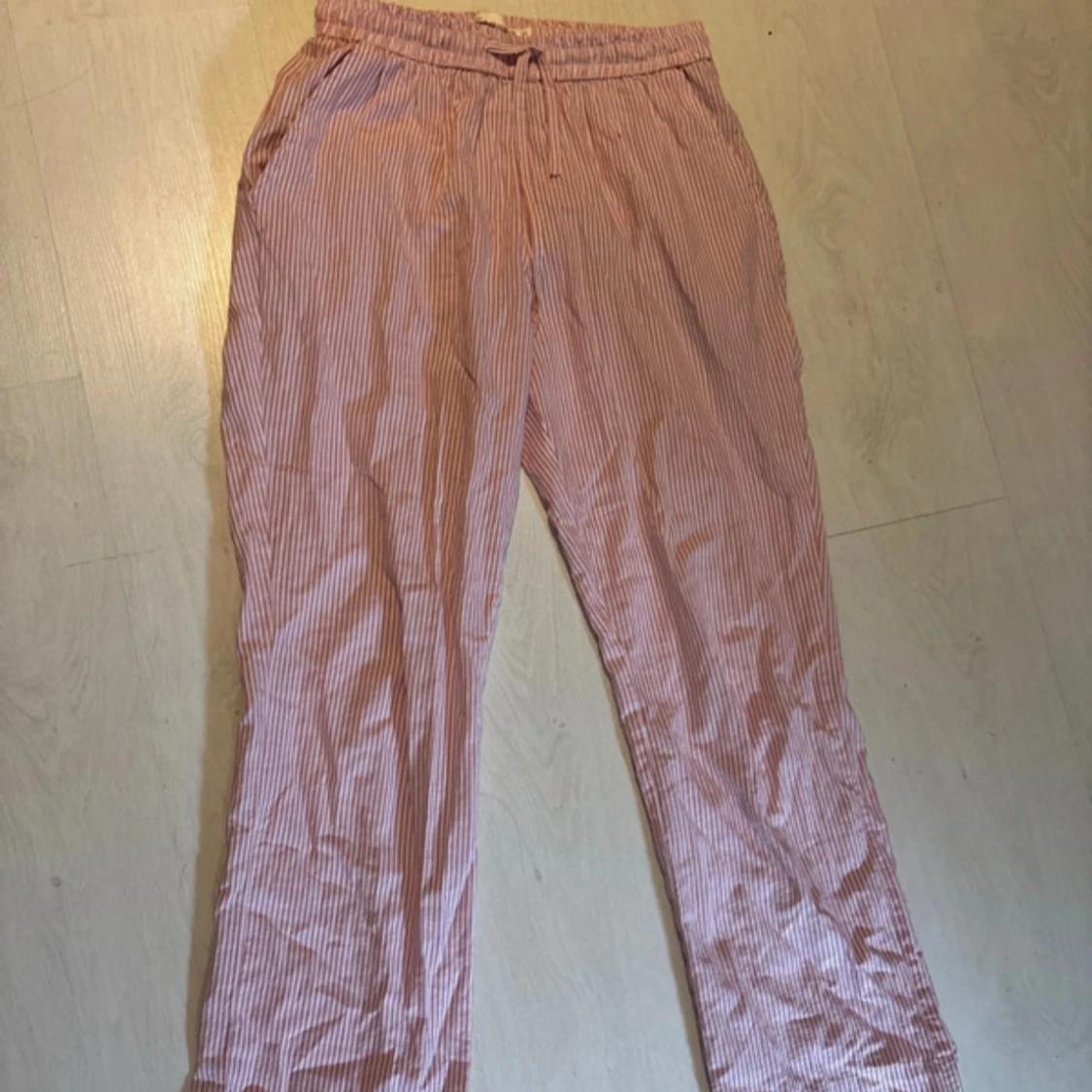 Säljer ett par snygga rosa vit randiga byxor, man kan ha dom till typ vad som, sköna bra skick