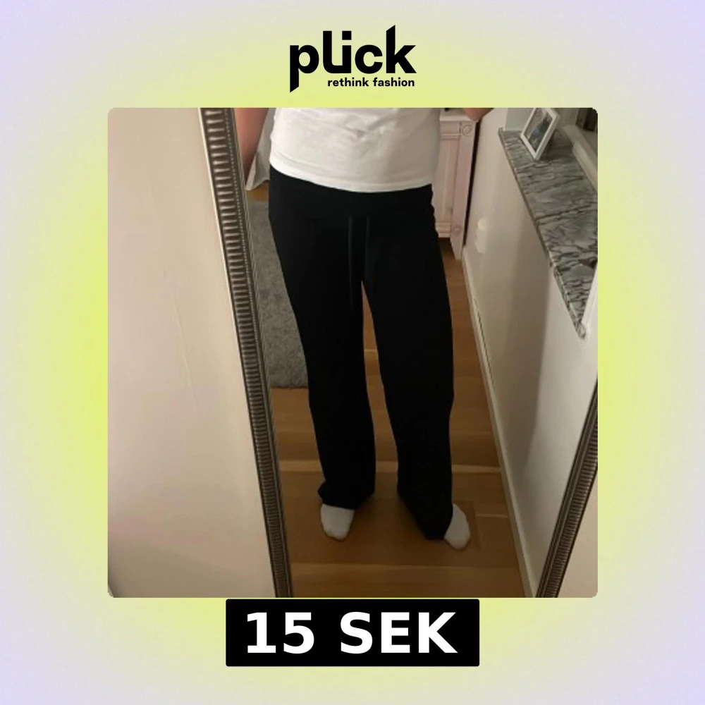 Säljer ett par svarta mjukisbyxor med skön loose passform och snörning i midjan. Perfekta för chill dagar eller när du vill vara extra bekväm. Byxorna har raka ben och är gjorda i mjukt material som känns nice mot huden.