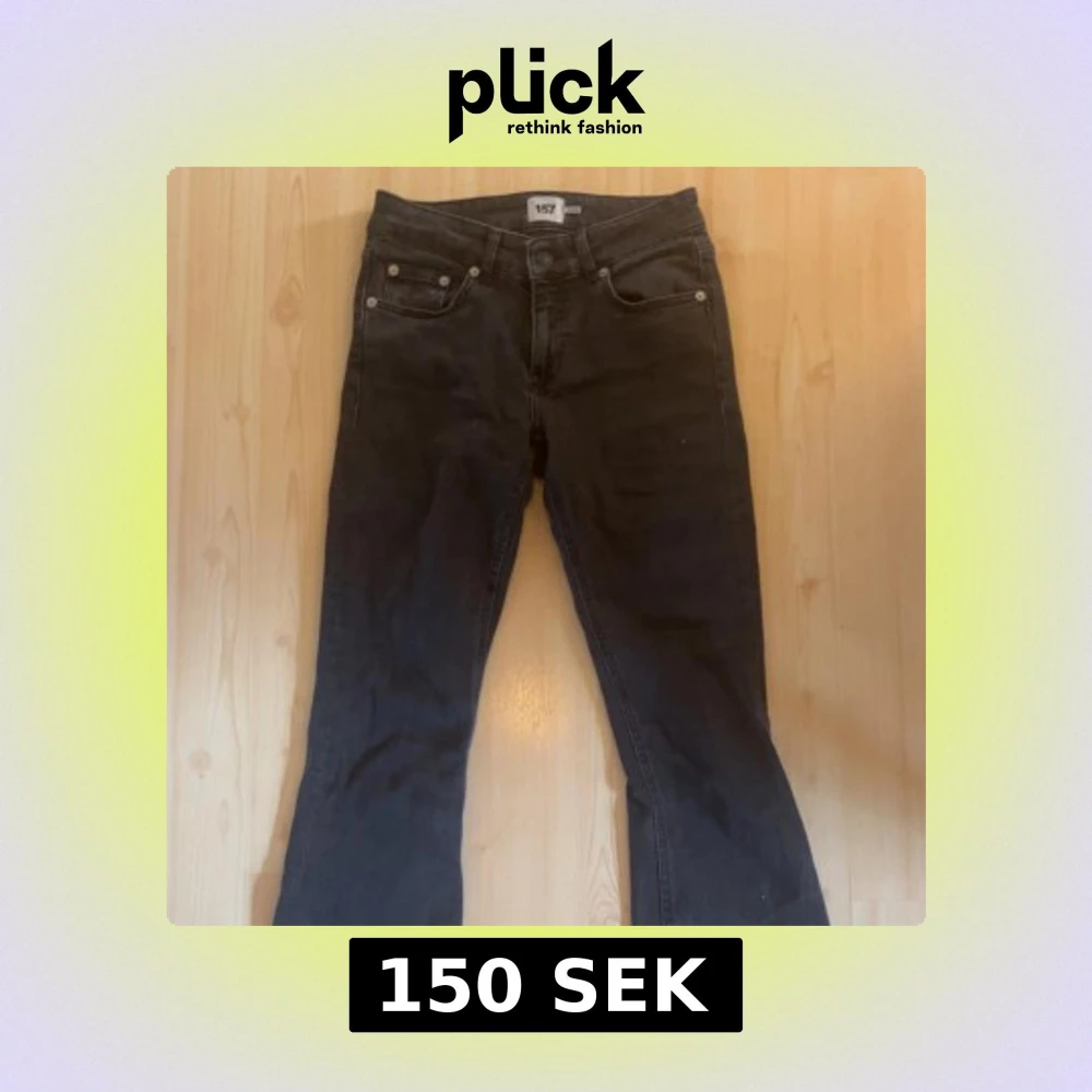 Svarta jeans från 157 i modellen bootcut med full längd. Jeansen är i storlek XS. Man ser inte hela jeansen på bilden så fråga mig om ni vill ha fler bilder!