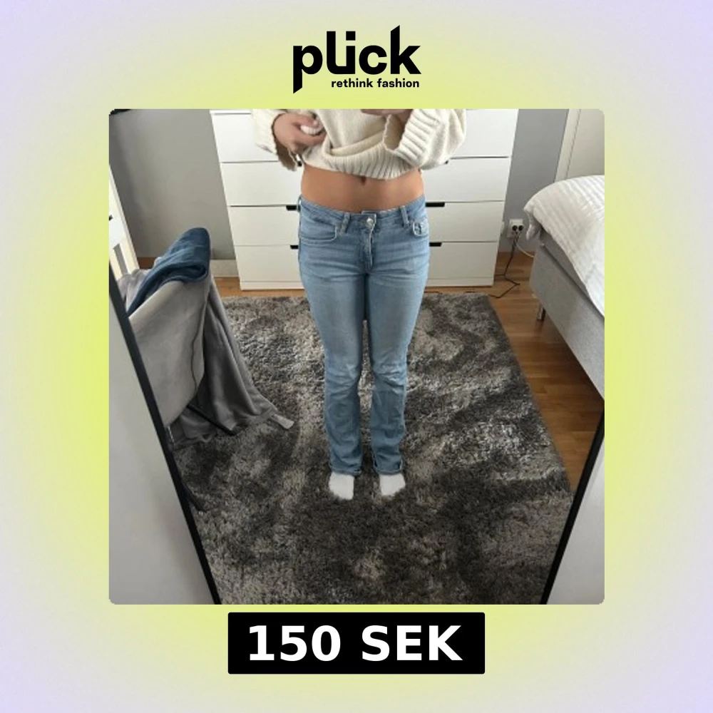 Säljer ett par ljusblå bootcut jeans från Lager 157 i storlek XS men passar även S. Jeansen har låg midja, snygg passform med lite utsvängda ben och lite stretch i materialet. 💕💕i bra skick men har en defekt att det är ett litet hål som man ser på sista bilden men det syns inte när man har på jeansen